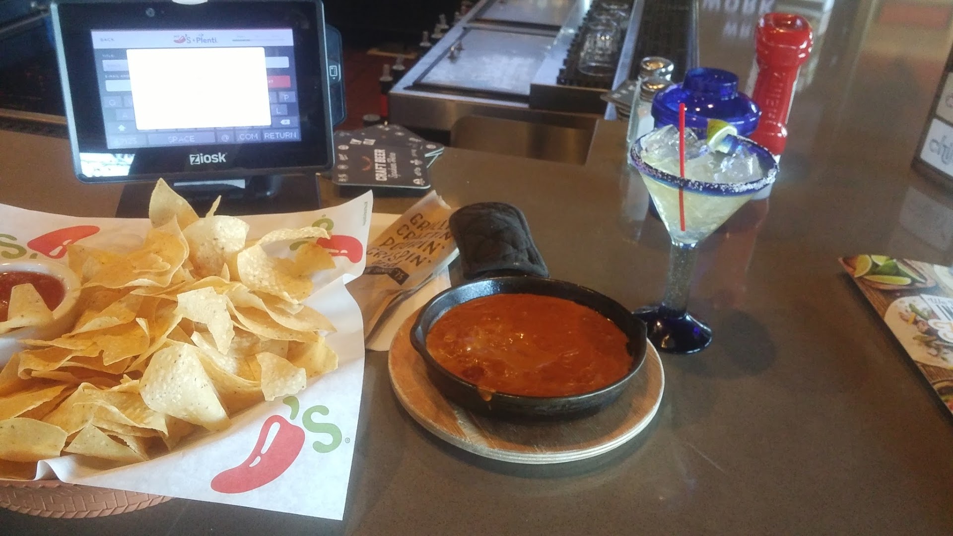 Read moreFirst visit to this Chili’s location tonight. Not my favorite franchise but I can always find something I like on the menu and it’s one of those places where you know what to expect. It was 20 minutes before we saw our waitress, who then jammed herself into the booth next to me. Ordered buffalo/bleu chicken crispers with no bleu cheese, which came out incorrect. They came back out and they had as much ranch on them as buffalo sauce (not mentioned on the menu or I would have asked for it to be left off as well.) I was informed that if they had to put every ingredient in a dish on the menu that it would be 80 pages long, but to me this was something pretty substantial to leave off. They did make new ones though and the food lived up to expectations, I just didn’t appreciate being made to feel like I should have somehow known they were drenched in ranch by the manager so I could order differently. Took another good wait for the server to bring the checks before she disappeared again, the manager had to run them for us. It wasn’t that busy. I appreciated the manager doing his best... we saw him more than the server, despite being mildly condescending.