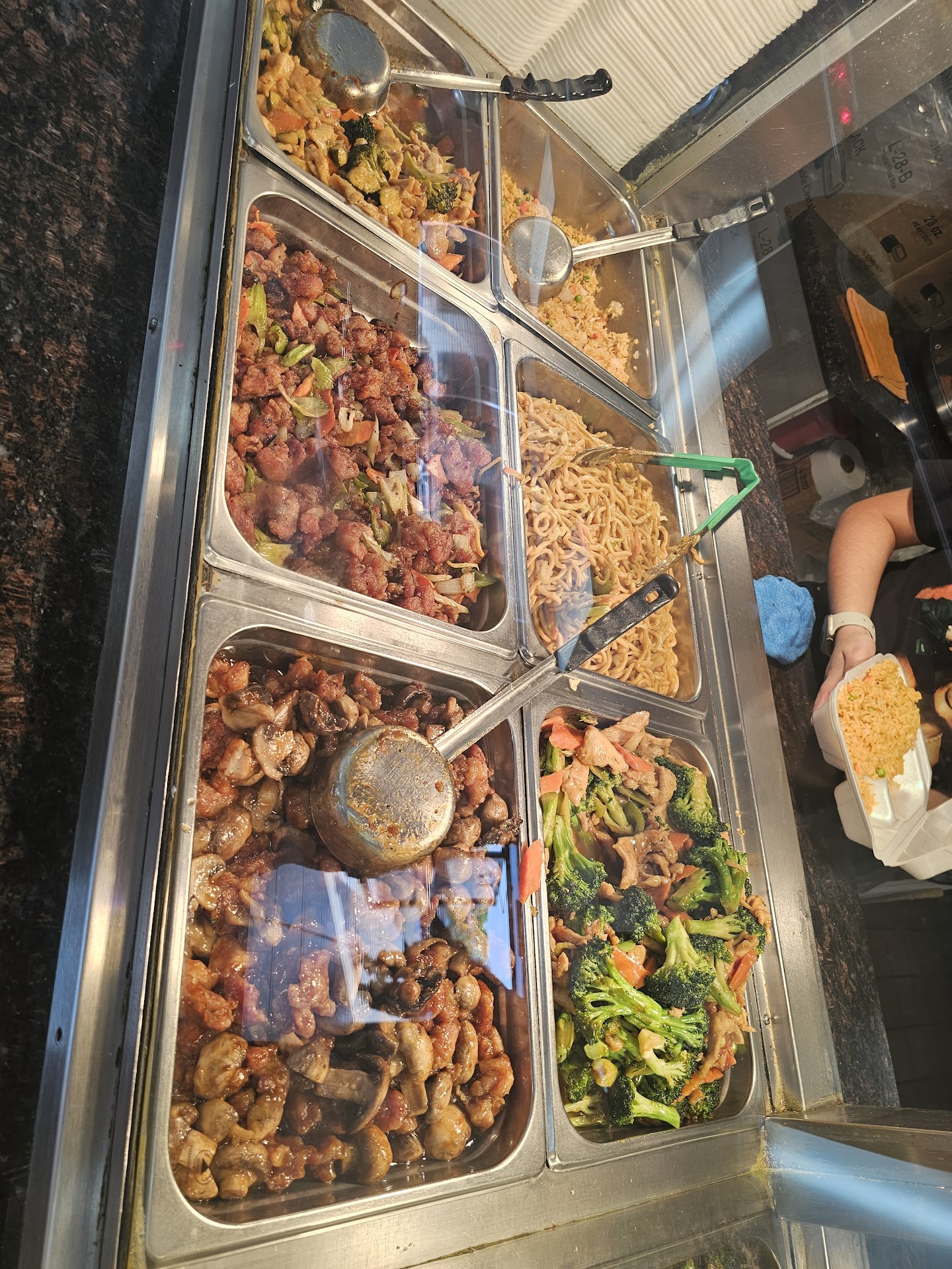 First time. Pulled it up on Google for closest place to me that had fast food chinese food. Its similar to the mall set up with buffet style but they fix your plates. The portions are large. You have to ask for shrimp fried rice which is what I eat. They make it to order. Not a fan of this brand of rice (more yellow than soy sauce brown but its edible) They only have fried rice on display along with several different beef, chicken, pork, dishes and 2 shrimp options. Again the portion servings they give are large. You buy eather single servings or meal deals just like the mall setups. You get more than your money's worth!