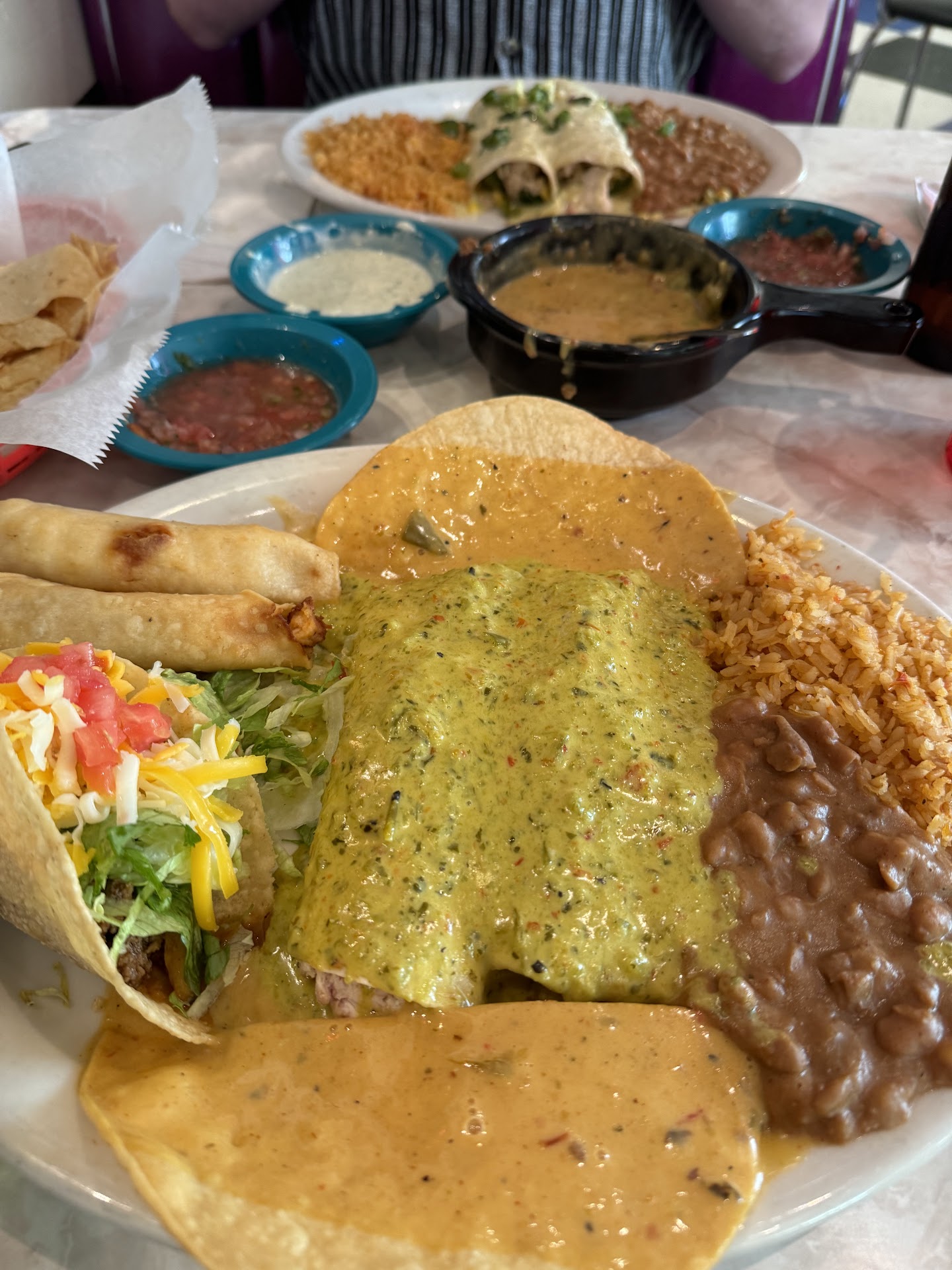Starting with the fresh chips, DELICIOUS salsa, and jalapeno ranch is the way to go. Donât get chip full though, save room for the amazing meal coming to your table!! We always try something new and every single time itâs a win-win. If a meal comes with a cheese enchilada, I always substitute for their chicken + boom boom sauce. The boom boom sauce is what they are known for and for good reason. Itâs incredible. Our drinks are always fresh, delicious, and wonderful addition to the meal. Servers always know their stuff and have recommendations if you need them! Thank you for having non alcoholic options for fun drinks! REALLY makes a difference to us. The prices on everything are sooooo good. Fast food is literally more expensive and instead here you get an artful and delicious meal with all of the sides and additions.