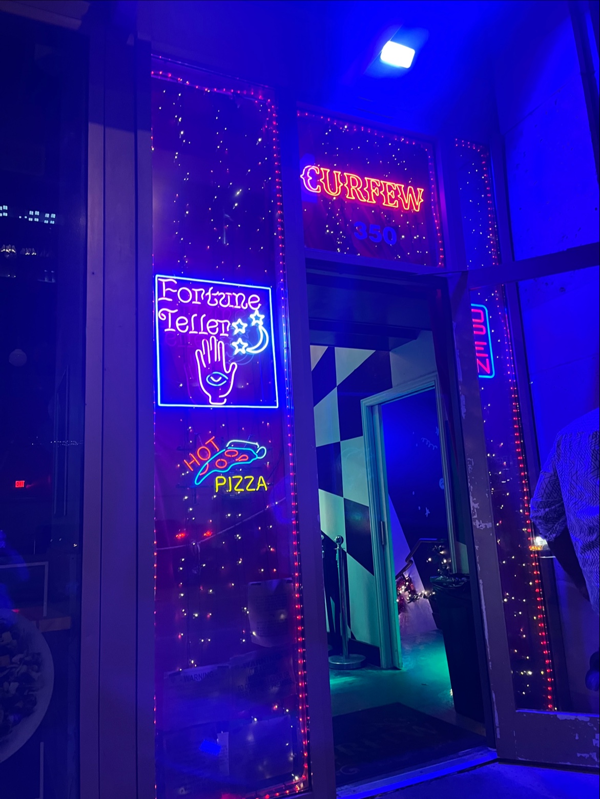 Upon entering, there is a Zoltar the fortune teller machine which seems to be the mascot here, and then a stair case that leads you down to the basement bar. String lights galore, funhouse/carnival mirrors, and a free video/boomerang booth awaited us in the hallway before entering the main room. To our surprise, the place was dead. There were maybe about 20 people, which was crazy because all the vibes were there.