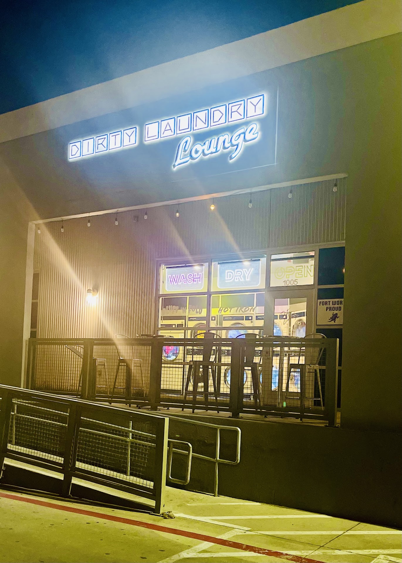 Interesting concept of a hidden cocktail lounge cleverly hidden in a busy strip mall surrounded by restaurants and specialty shops behind a faux laundromat âstorefrontâ in Fort Worthâs West 7th Street district. To enter, look for the handle on the âout of orderâ machine sign and pull forward to reveal a glow in the dark, dirty laundry themed bar with interesting house specialty drinks and great service!