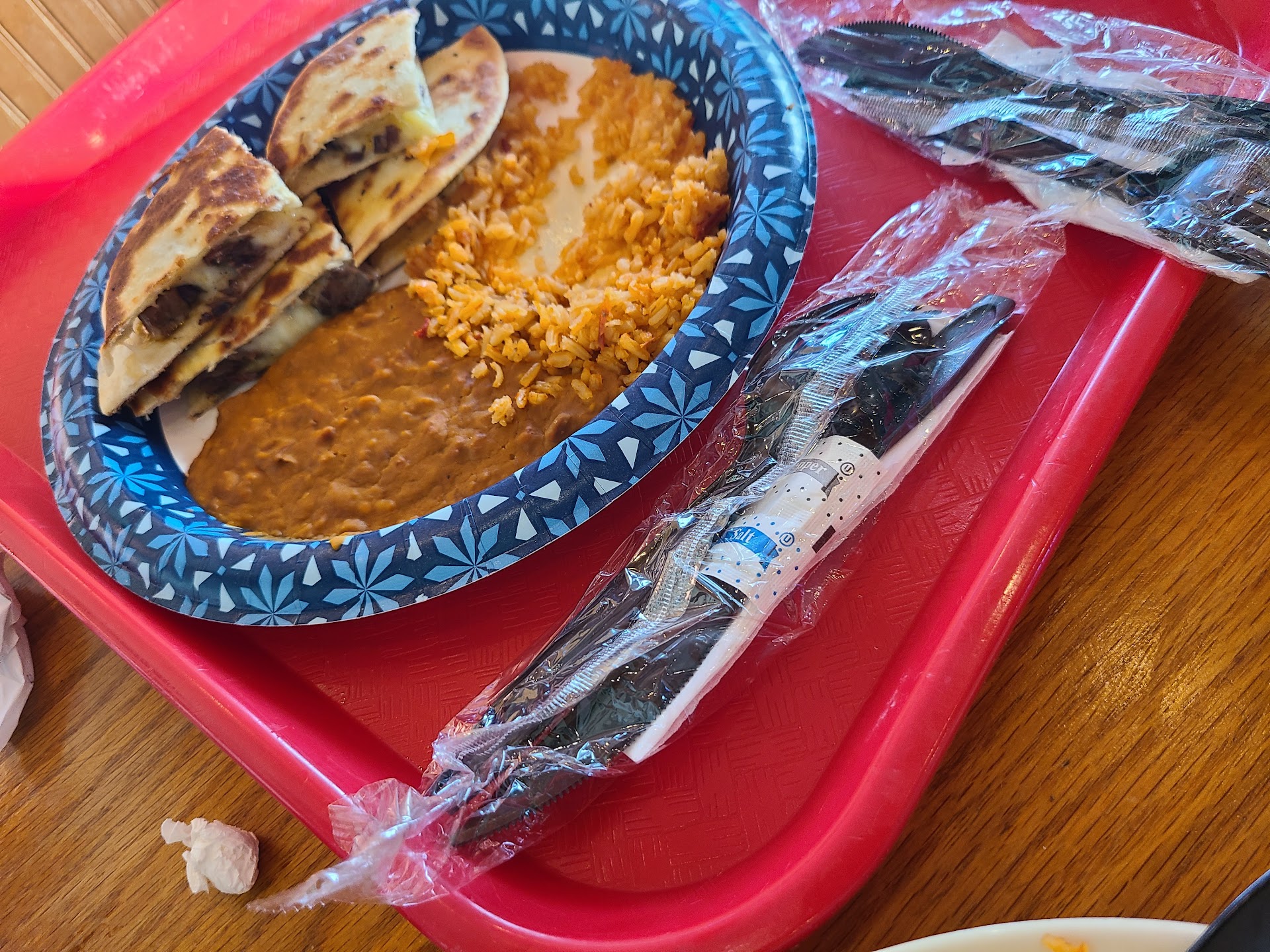 Came here for dinner with my family. We all had different types of quesadillas meals that came with rice and beans. Overall, we were very pleased with the service we received today. Our sons meal was a regular quesadilla with no meat. At first we received the wrong order and when we went to go let them know. So what surprised us is that we were apologized to by the staff for the mix up. Then we were told to keep the wrong order and then when the order was corrected, instead of only getting the quesadilla that was wrong we actually got a whole new order of rice and beans with the quesadilla! The whole staff was extremely nice and apologetic. The restaurant was very clean, from where we could go to order. To also where we could go sit at the table to eat and lastly the restrooms were clean as well. For this being a first time experience, this is somewhere I would love to come back to. It was so nice trying somewhere new and it also had such a...