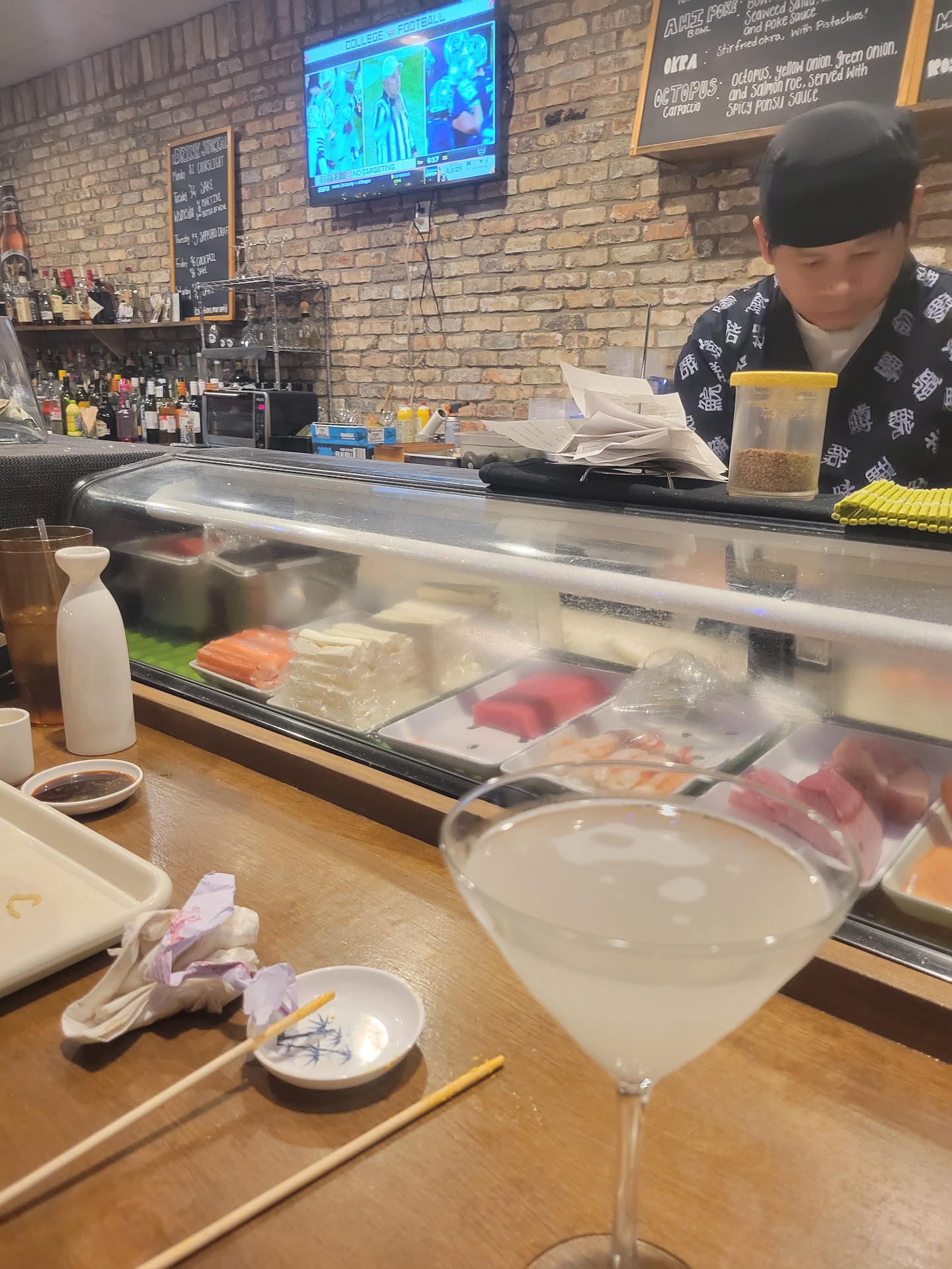 Read moreit is a good place for some sushi. The team in the establishment is friendly, but the decor can use a LOT of work. For example, sitting at the sushi bar, all you see in the glass is unwrapped fish, with the wrappers just cluttered against the glass. Behind the sushi chefs are a bunch of take out plates, bowls, wrappers, bags, ... basicaly a storage shelf of stuff... so basically, how can you call this place a nice place, if all you see is Sports on the screen, storage goods behind the chefs, and wrappers pressed against the glass. (mainly why I give it only 3 stars)