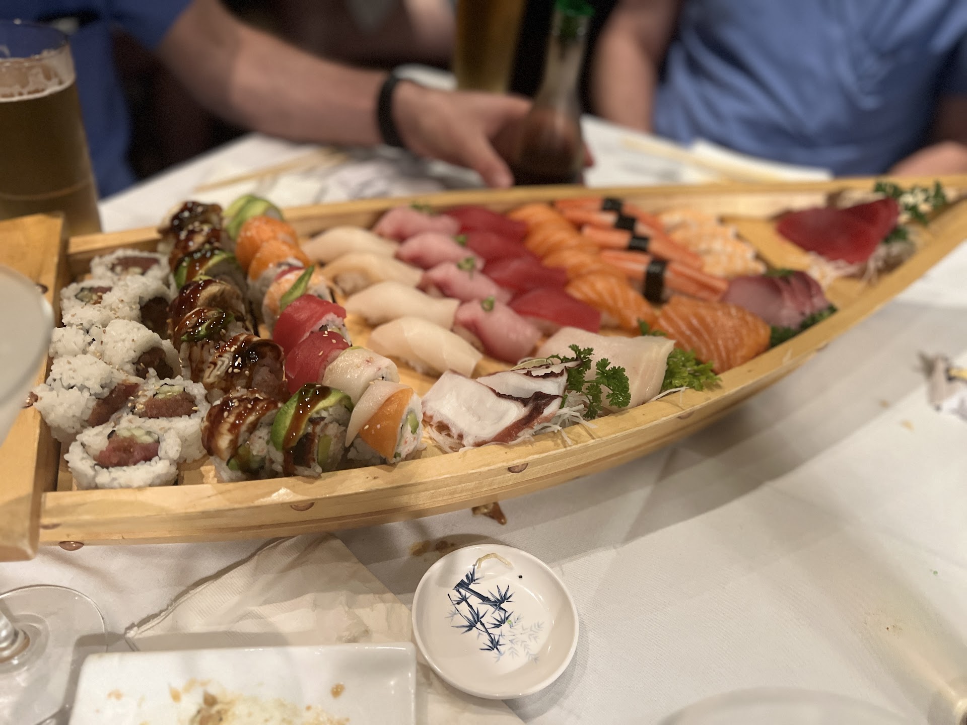 The highlight of our meal was undoubtedly the sushi boat for four. The presentation was impeccable, and the variety was impressive. The rolls, especially the Rainbow, Dragon, and Spicy Tuna, were crafted to perfection, each offering a unique blend of flavors and textures that hit the spot especially after a long day.