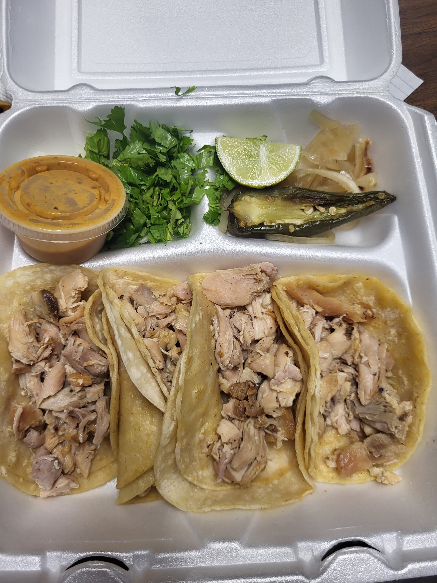 Read moreTacos are served with cilantro, onion, grilled onions, chile toreado, and limes on the side .Just had 3 tacos de tripa and 3 de trompo. Trompo wasnt bad not salty and it was well seasoned but not top notch. Tripas tacos were skimpy barely any tripas more crunchy and toasty than crispy. Im picky with tacos and their tortillas need help. Maybe a stronger yellow corn would be better to help disguise the conservative additive taste.