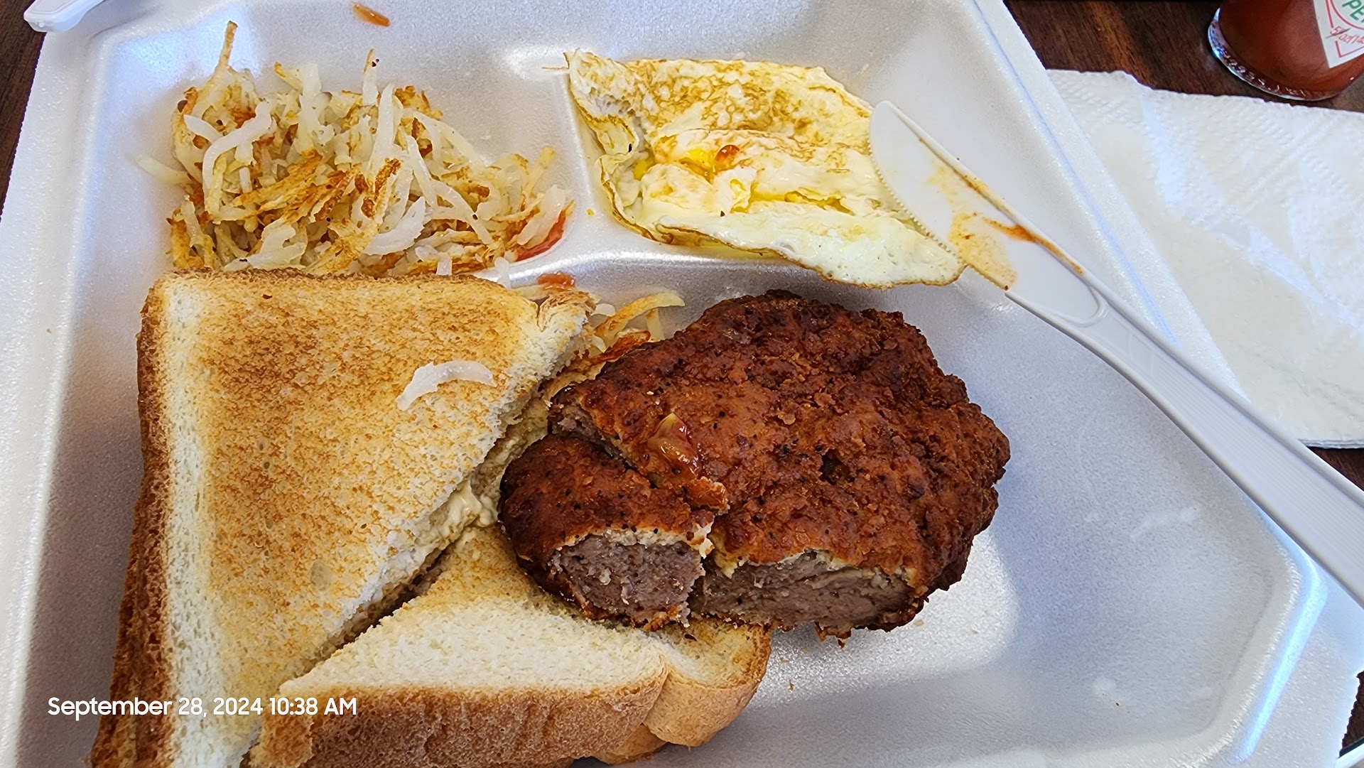 Read moreDoorDash order - not comparable to eating at location. New to Haltom City and enjoying exploring all of the food options. Ordered from Famous George's after thinking about a Denny's Lumberjack Slam all morning, but deciding to look for a less... "Denny's" type of spot. I got breakfast platter #1 w/ added order of extra hashbrowns and ham (and a lunch Bacon cheee Burger for later ;]. haven't tried the burger yet, but it looks alright and tasty.)