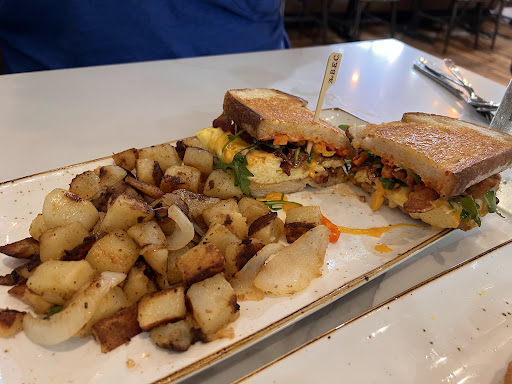This has by far been the worst brunch spot Iāve been to. My friends and I decided to try a new brunch spot on this side of Fort Worth after hearing it was a newer location that just opened up. The wait was not bad for we joined the waitlist online. As we approached the front desk area to check in, we were asked to wait outside since there is no wait area inside. As we got the text to come back in after 7 minutes, we were placed at a table that was harder to get to but absolutely didnāt mind for we are not that high maintenance to really care. When we sat down, it took a bit for our waiter to get to us which is understandable for a Sunday brunch hour. About 15 mins later the waiter finally came and took our order. A good amount of time had passed and the food runner comes and brings our food. But for some reason didnāt want to take the extra step to either put each dish on the table so she stands there waiting for us to extend our hand to grab it from herā¦.the waiter never then checks on us until the end where we are almost done eating as we needed water for we were only drinking the sangria. The food was so unflavorful and bland! As the waiter finally comesā¦we ask for a glass of water each. He then comes back 10 minutes later as we are already to just grab the check and leave. He drops it off and just walks away. Just before we could even pour the water we look at the cups and theyāre all dirty! One of the glasses even had food particles on the rim. We then had to wait another 10 minutes just to wait for the check! I would not recommend coming back to this location nor even recommending it to anyone! The only thing that was great was the sangria and yet I still wonder if the glasses used for that...