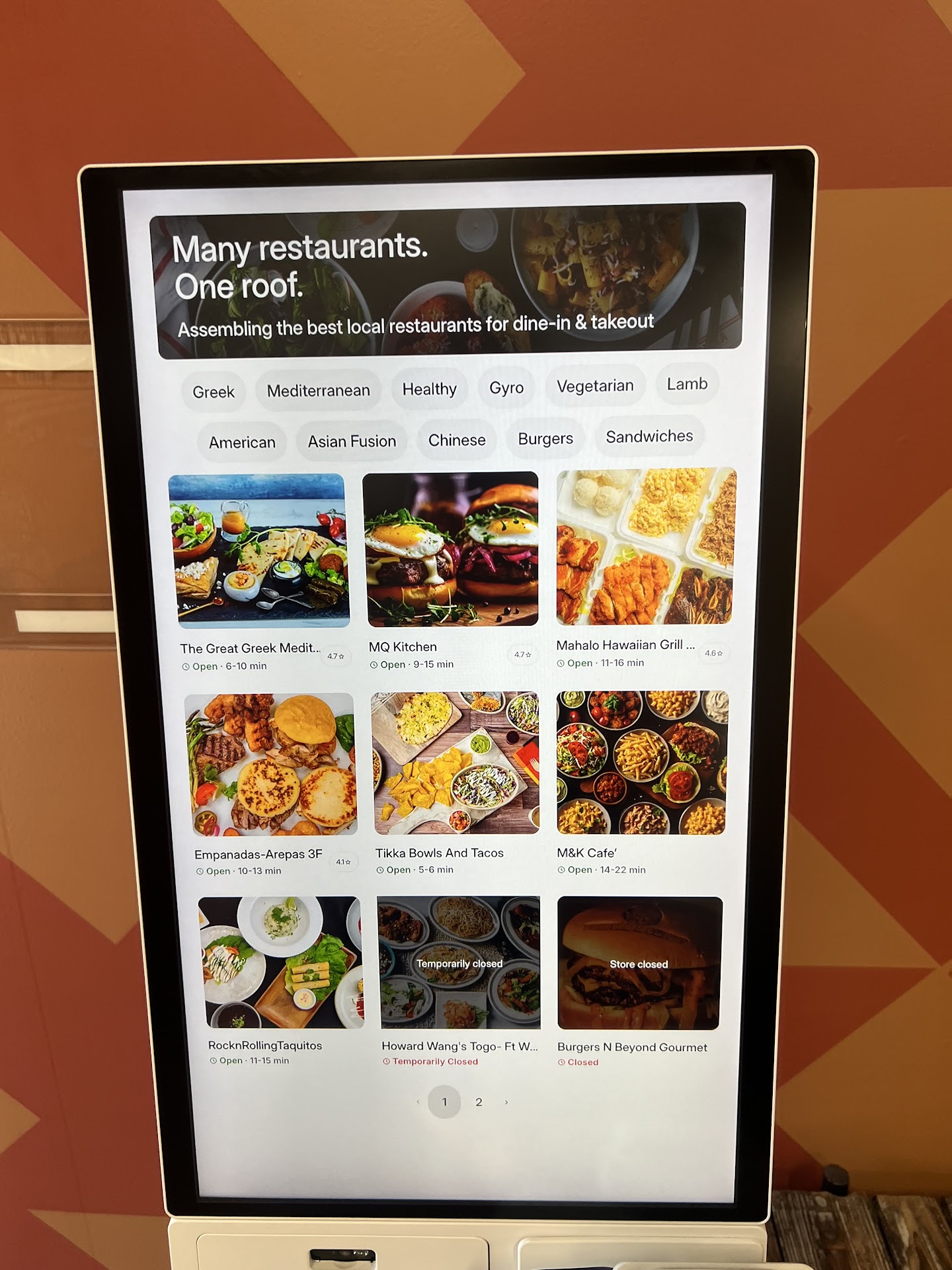 I certainly wish someone anyone would have shared that this is NOT restaurant. This is a futuristic pick up take out order place. You walk in and there is a touch screen, there are numbered boxes. You never see humans…..I’m sure the food is excellent, but this is not for me. I STILL enjoy being around live humans. ** We came back when we were on the way home and we were not disappointed….well?? Kinda. The Pastrami Pit was amazing!!!! We got to the keiosk and it was 7:03 but the Pastrami owner allowed me to order and OMG! The Pastrami Dip was HUGE! Worth every penny!!! The MQ burger we ordered was so juicy and flavorful! The fried egg squirted all over and created an amazing sauce!! The onion rings were so amazing they were still crunchy after a 20min drive home. The sweet potato fries were really good. The sauces!!! The sauces!!! The only thing that was NOT good was the spanakopita which had zero…actually zero spinach or anything inside. It was an empty pastry from the great Greek...