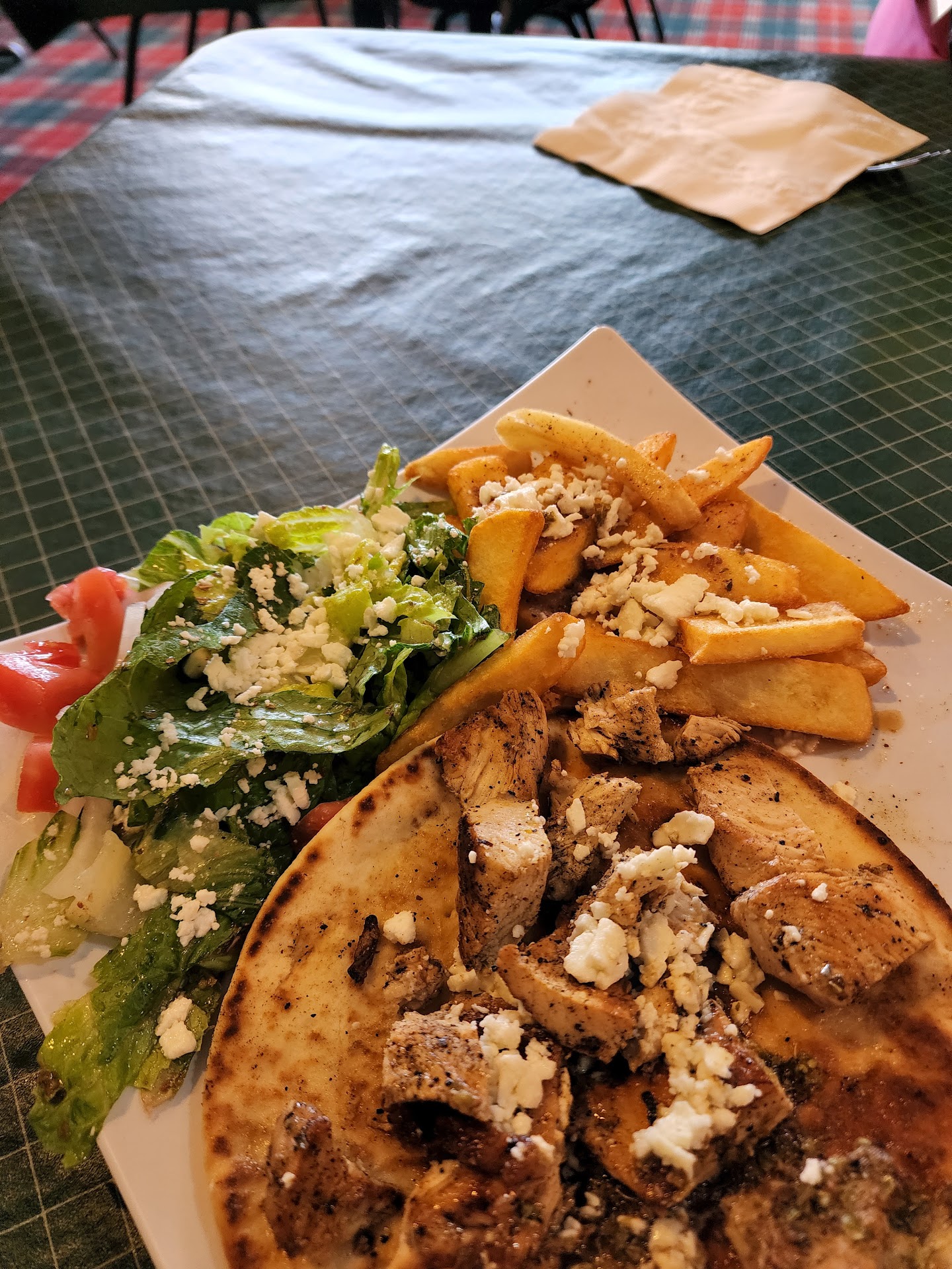 I came here at 1155 specifically for the lemon soup and was told that it's not ready. Of all the Greek/ Mediterranean restaurants in this area, Greek House is the only one that has lemon soup on their menu. And it's not ready. I ordered a ham and Swiss sandwich (8.49), which was okay. Ham was super salty, though. Daughter ordered the vegetarian plate (15.51) which was supposed to have 3 dolmas ( she got 2 warm soggy ones), fries (did not make it to the plate), 3 fried zucchini slices (never showed up), tzatziki (no flavor), salad, falafel patties (no flavor), hummus. Oh, and everything is ala carte except for the gyro plates. So I paid way too much for a sandwich and a vegetarian plate. They raised prices and did not change the board or menus to reflect this. There are many Greek restaurants in the area to try. I will not be back. I will make my own lemon soup...