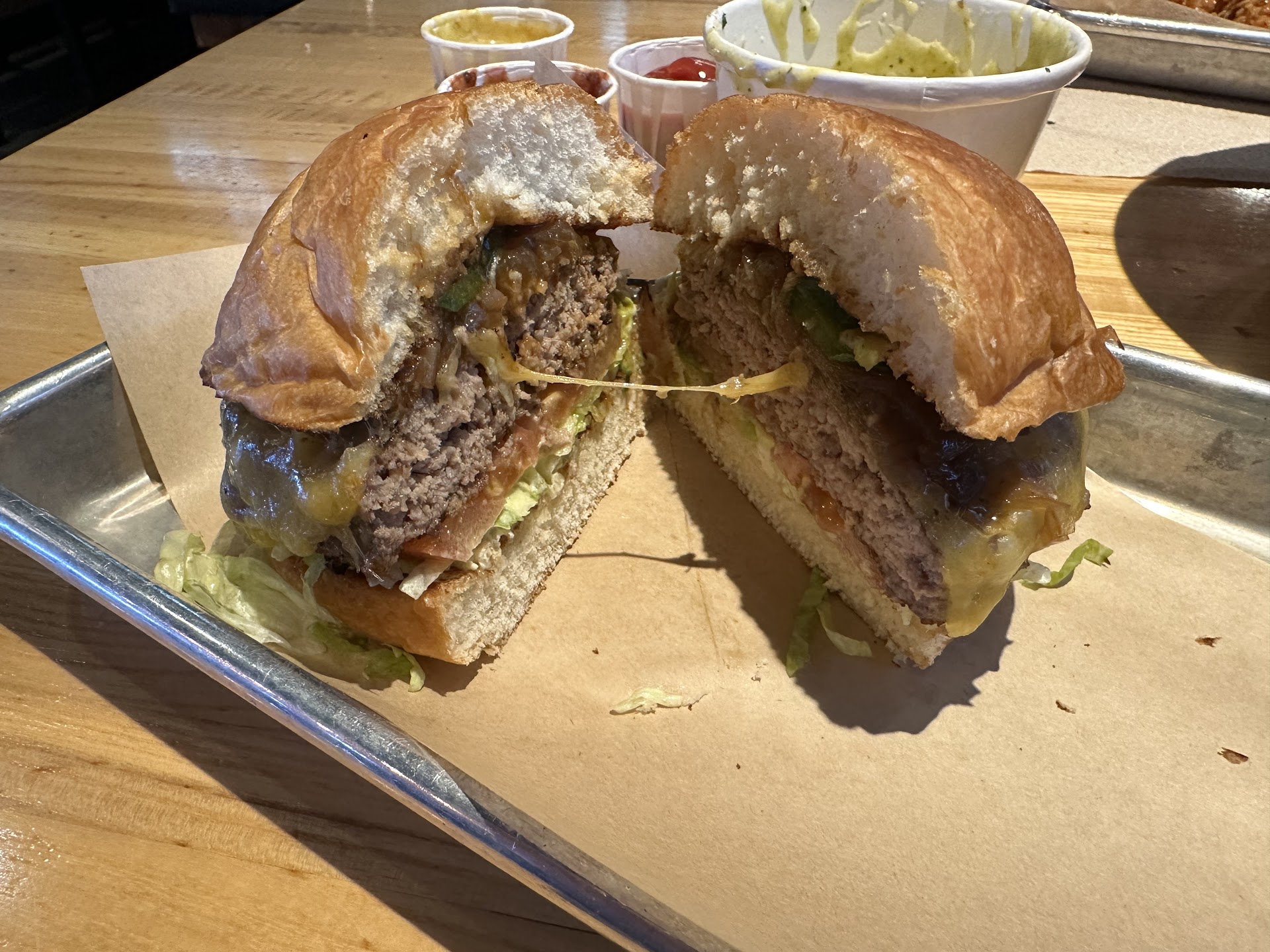 Read moreItâs sometimes hard to give a burger place five stars however this one leaves nothing to criticize, which should not be a focus anyway as a reviewer! The entire buildout is open, modern, crisp, colorful, and decidedly NOT silly or overdone, as places easily can be. We started with the green chili queso fries. In addition to the chili queso, there are also standard options of ketchup and mustard along with chipotle ketchup and honey mustard. I must honestly say the sauces are completely accurately named and the refreshing tastes were spot on. I had a hard time getting away from the queso or chipotle even with such options! A pleasant challenge to have. Quite good! The fries came out first on purpose and really is a proper call in the entire experience. It not only gives you something to nibble on while entrees are prepared, but allows for gently passing the time, and granting an opportunity to peruse the bar. We orders the chicken tenders with hot honey sauce and the Goodnight burger. Both were prepared as ordered and cleanly presented. I was personally quite happy that they served my burger with a ârealâ, serrated knife, which most places do not; and if so is often a dull butter knife. Portions were ample, especially after scarfing the fries. The entire staff was absolutely positive, well-educated on the menu, etc, and exhibited professionalism down to retrieving to-go containers, etc on request. We even asked for a copy of the receipt, as I learned they have a rewards program, which I downloaded while there. They were even able to quickly dig that up and print it. I often comment on bathrooms as they are an overlooked item in many establishments. These are sharply kept and quite sanitary. Well done. There is truly something for everyone, from the indoor and outdoor seating, to the kids items and a full bar for the adult in many of us. I...