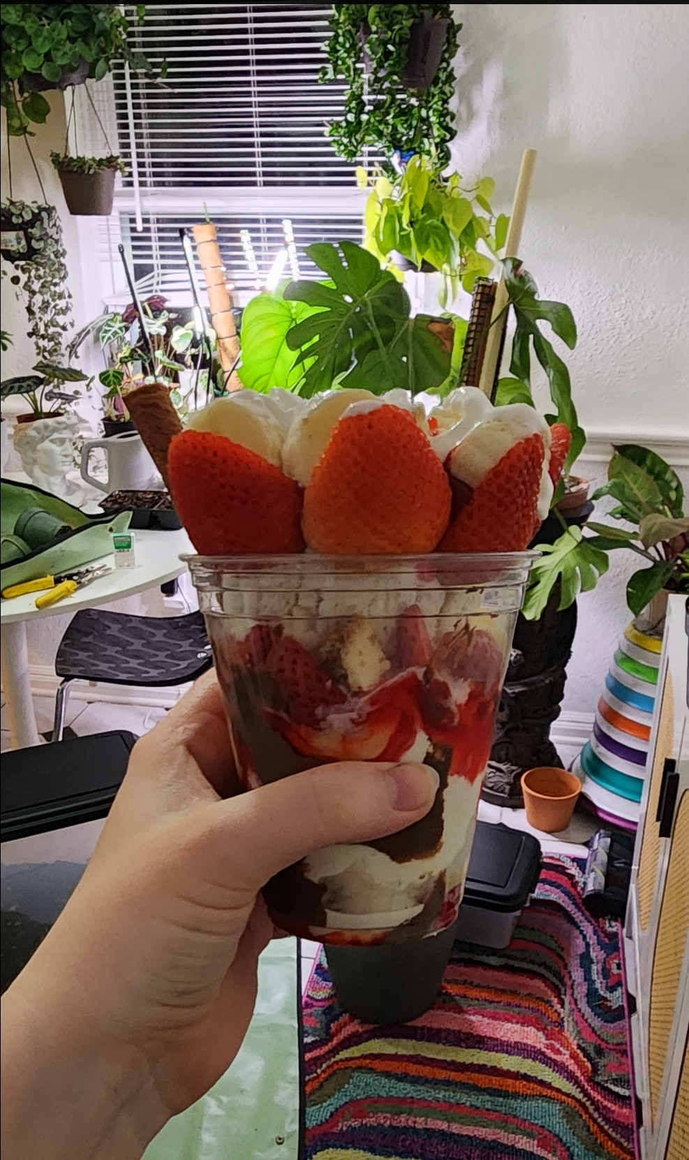 Read moreHonestly worth the price for what you get. I'm genuinely impressed. I added two toppings (banana and cheesecake) and they mixed it in so that it wasn't just thrown on the top i got to enjoy it through the whole cup. They held it all in with these super fresh strawberries and it was made really fast. It actually looked better than this but my hubby messed up the whipped cream. I plan to frequent this place as often as my diet will allow lol. I got the The valentine if that helps. Hubby got peanut butter one and he also felt...