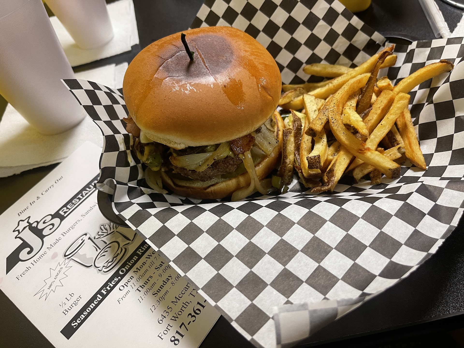 Read moreThis is absolutely the best burger in town. They use 100% angus beef and each burger is 1/2 lb!! Not 1/4 lb and not 1/3 lb but 1/2 lb of pure angus beef that they have perfectly seasoned! If you order a double meat burger you are getting one full pound of pure angus beef! Plus they have all sorts of variations and toppings, making them a gourmet burger. My favorite is the habanero burger with grilled habaneros and onions! Next would be the chili burger or maybe the quacamole burger!! There are too many variations to list and not enough days in a month to try them all!! The very best part of all of it is the very economical price for these burgers. You will pay what you would normally pay for 1/2 lb or even a 1/3 lb of ordinary beef burgers! They simply cannot be beaten! A...