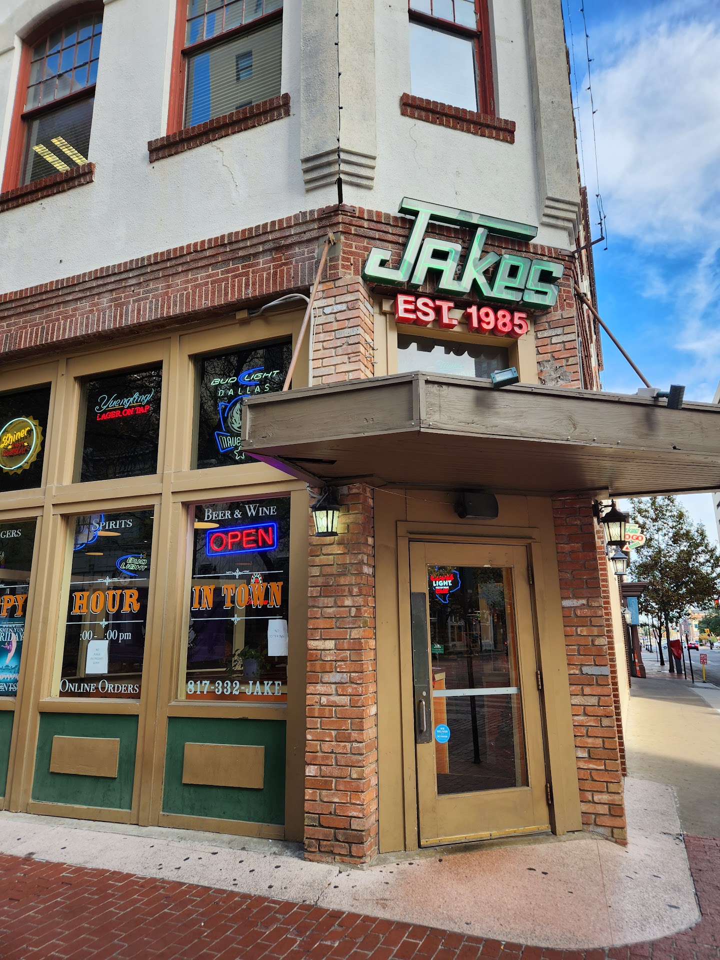 During a recent visit to downtown Fort Worth, my co-workers and I had the opportunity to dine at Jake's, a restaurant that had piqued our interest. Upon entering the establishment around 11:30 am, we observed a moderately occupied space, with a handful of patrons at the bar and several groups in the dining area.