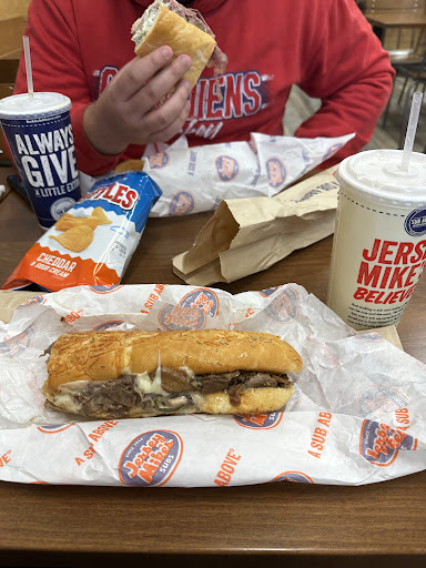 Read moreThis was the first time I've ever visited Jersey Mike's Subs and I must say it was really, really good. I had one of the hot subs and it was excellent. Seeing them slice the cheese and meats right in front of you is very unique and fun. Like ordering ham, turkey or cheeses from the meat department and seeing them use the big slicer. The employees were not enthusiastic but were professional and nice. I can't say that I blame them however as the day we visited it was Christmas Eve. I'm sure they wanted to finish, close up and go home to their families. The inside was clean and well maintained. They're fountain drink selection offers Pepsi products, but also Dr. Pepper and Diet Dr. Pepper as well. They do have 20 oz drinks for sale too. They have 3 main sizes of sandwich: Mini, Regular and Giant sized. The regular is 7 inches and the giant is a whopping 15 inches. If you get regular size then the prices is fairly normal for what you'd get Subway or somewhere comparable. If you go for the giant size however you'll find yourself easily starting in the $12 range. So bring your appetite but don't forget your wallet either. The service was quick and hot sub was piping hot and delicious. I will say however the bread choices here consist of white or wheat and if you have a lot of delicious toppings it doesn't matter. However my brother was with me and he ordered a very simple ham and cheese on white. Nothing else. Yes he's odd, however since the bread is fairly plain it made his sandwich a bit bready. Unlike Subway who has many different flavored breads to cover up the breadiness, this was just plain bread. For most no issue at all, just order a delicious flavor packed sandwich with tons of toppings and dressings, but for those few who like it plain, you may prefer Subway. So beyond that this place was amazing and if you like flavor packed subs with tons of toppings then Jersey Mike's Subs will not disappoint...