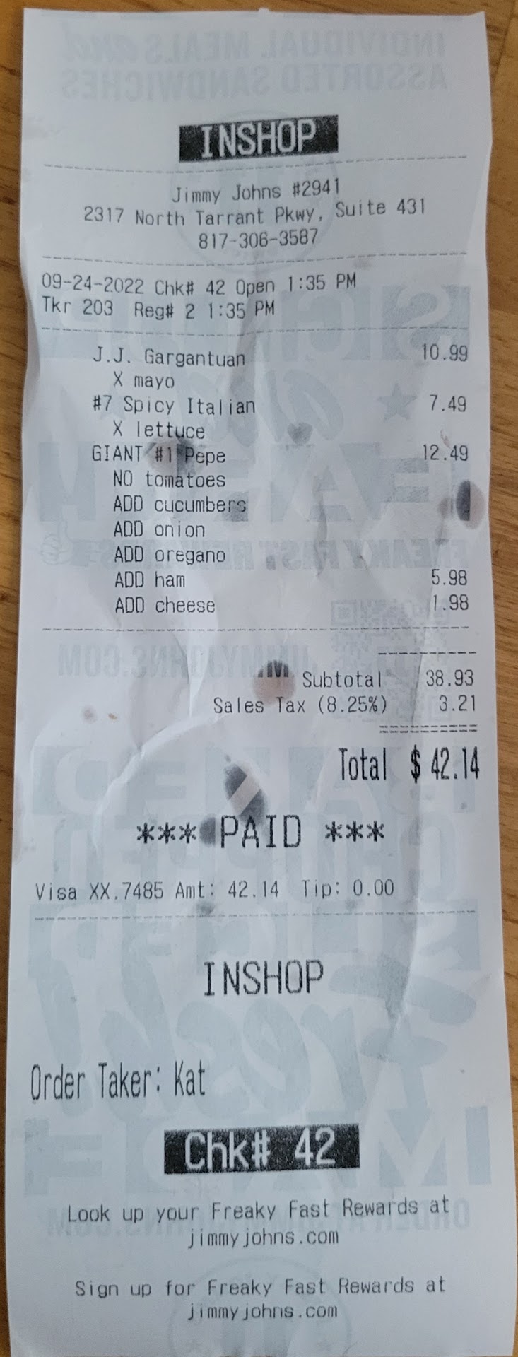 After making my sandwich, she just called the order number, put my sandwich on the counter and walked away.