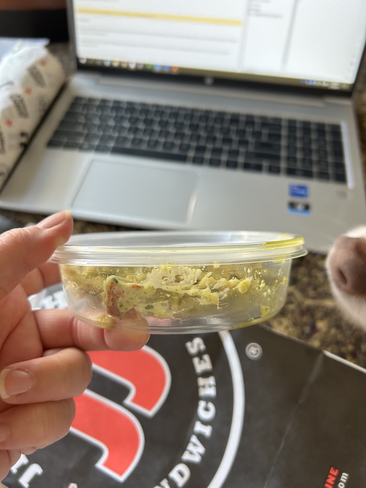 Now, we did get most of the food we ordered, but it wasn't worth it. I paid for extra guac on a veggie sandwich and you could barely see any of it.