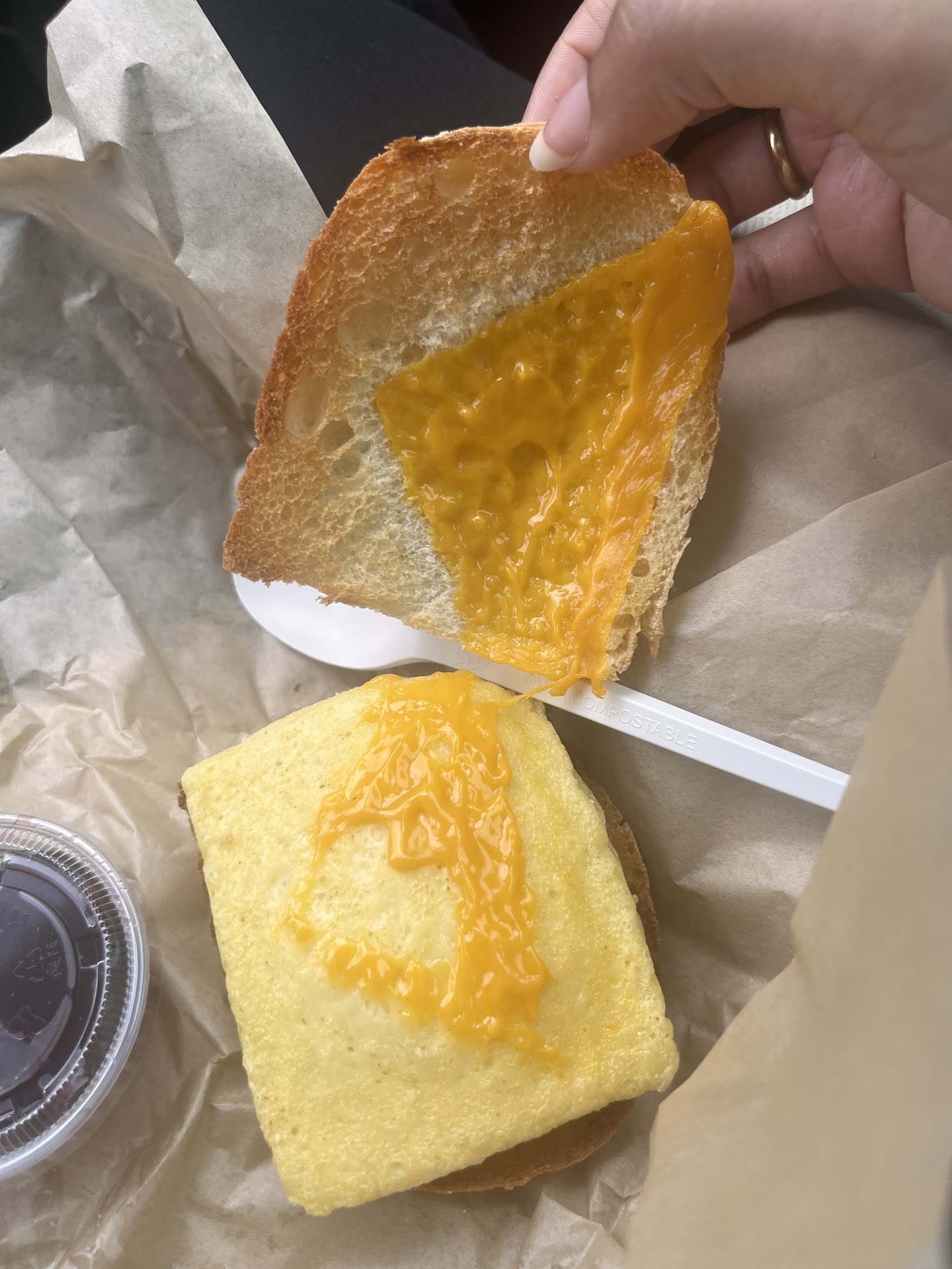 Read moreDrove through Fort Worth from Dallas on the way out of town, so I decided to pick up breakfast here since it was one of the only places open at 9 AM. The employee thought it was important enough to answer a phone call while I waited but when I walked in, she turned her back and said nothing until I mentioned I was picking up my order. She was very cold towards me and not pleasant to be around - not one inkling she actually wanted to be there. My breakfast sandwich had a very dry, overcooked or stale, disproportionate sausage and super tough bread. The cheese was almost nonexistent. You’d think sauce or jam would be offered or come with it. I thought I would at least get a great juice out of the visit, but mine tasted expired or like it was missing its main ingredient. After all these experiences I had low expectations for the açaí bowl but it was actually good - just wished she’d cut the strawberries a bit more so they’re bite size pieces. Overall, don’t recommend and definitely won’t be back. Felt like a huge waste of money for the...