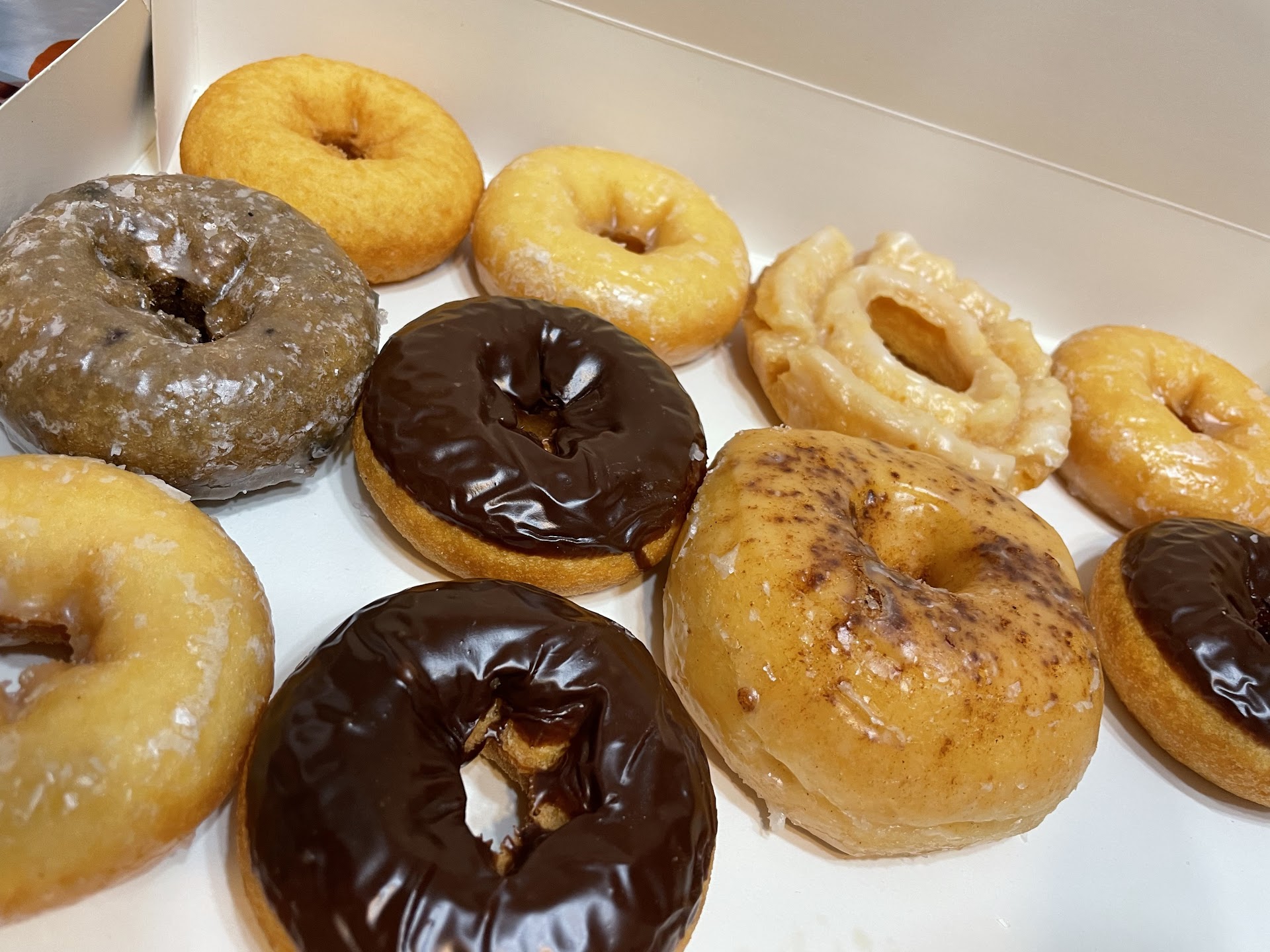 Lo and behold, I move by K donut and it’s simply the best. The apple fritter is crisp on the outside, fluffy inside. The cake donuts are perfectly moist and dense. The pigs in a blanket are always soft, with slightly sweet bread and fatty sausage. And the regular donuts are perfect - soft, stretchy layers of sweet dough.