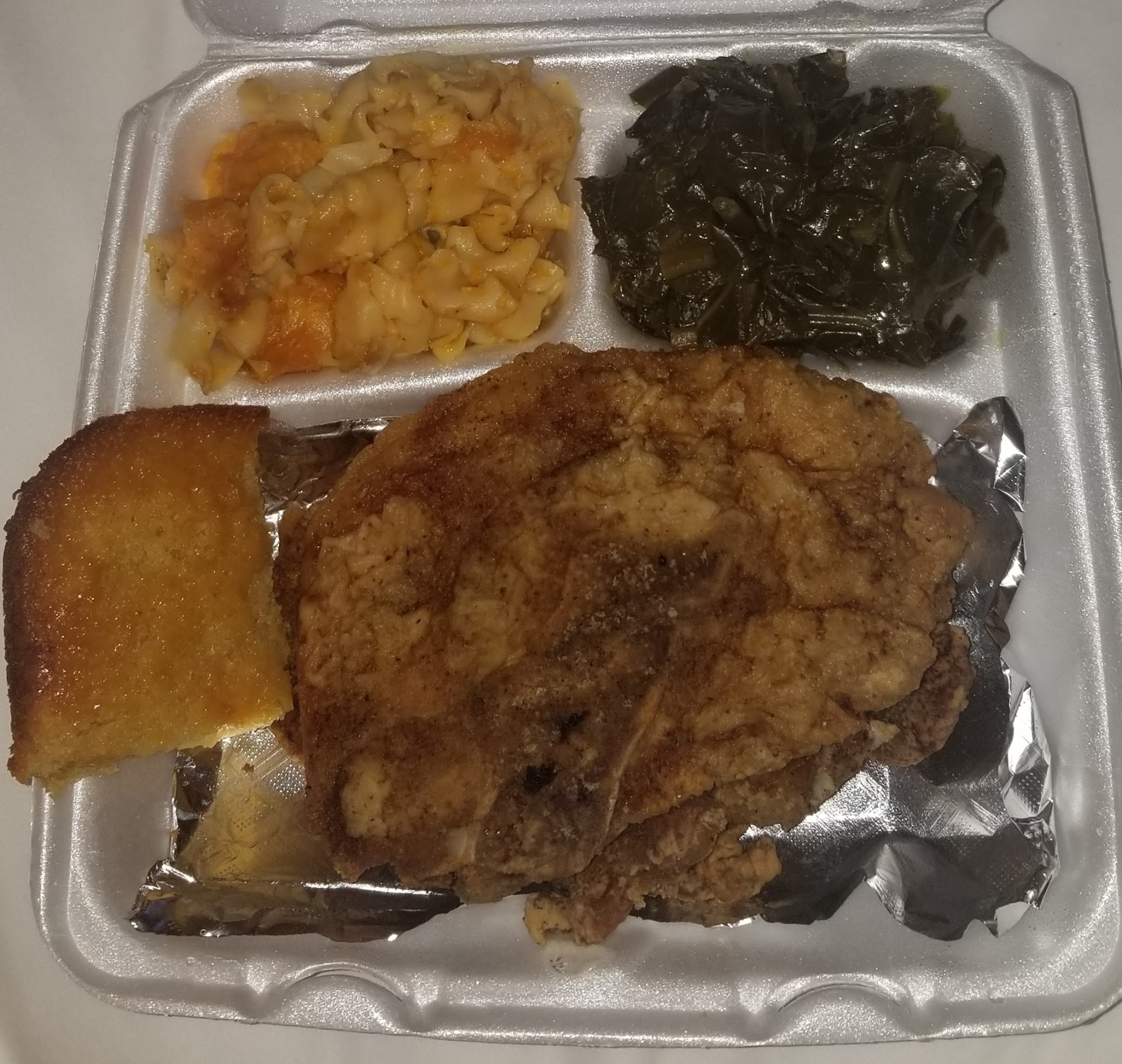 Read morePrices are lower if you order online rather than the kiosk at the location. I'm glad I checked our food before we left bc I got corn instead of the collards I requested. I had 3 piece dark chicken w Mac and collards. The collards were pretty good. The chicken was very bland, maybe it was just seasoned with salt & pepper but it didn't get ate. My cornbread was a waste, it was so sweet. The Mac was ok. Overall definitely not worth the $20 I paid for it. My son got catfish, fries & corn. The fish and fries got ate. His corn & cornbread was trashed. I definitely wouldn't pay $22 for it again. Probably...