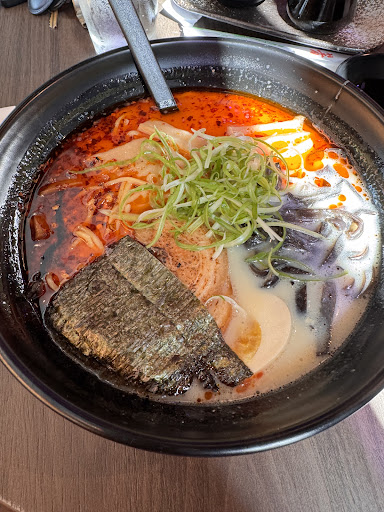 Read moreWe tried this place out since it’s new to the area! The decor inside is so cute and very spacious. It smelled brand new still. The staff is super friendly and we were able to place our orders with ease. They have lots of sushi and ramen dishes available. They also have teas, iced teas, boba, etc. We ordered the spicy tonkotsu and it was VERY spicy, it has a few heaps of chili oil right on top, so if you like spicy definitely order this! The meat was not super tender, but very flavorful. The toppings were good and a nice amount, but I do wish we had a full egg instead of just half. Our sushi roll was really yummy, we got a regular salmon roll. Overall, food is good and we...