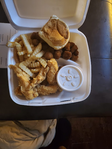 Order was filled quickly. Food was fresh. Hot. Good portions for price. Instant mashed potatoes. Package style white gravy. Ordered the 5 piece tender meal with corn on the cob. The corn was tender. Definitely pick up salt and pepper. The tenders were well made. Nice crunch. Tender and nice portion sizes. Bread roll was soft, fresh and slightly warm. All in all would return. Strange little shop. Looks like a seedy liquor store with a chicken store inside. Ample amount of chicken made for lunch rush as we were at the beginning of it. Looked great. All cooked to the same level of goldenness. May be a local "franchise or chain". Many locations on the map. Will have to look at photos of other locations. If you like...