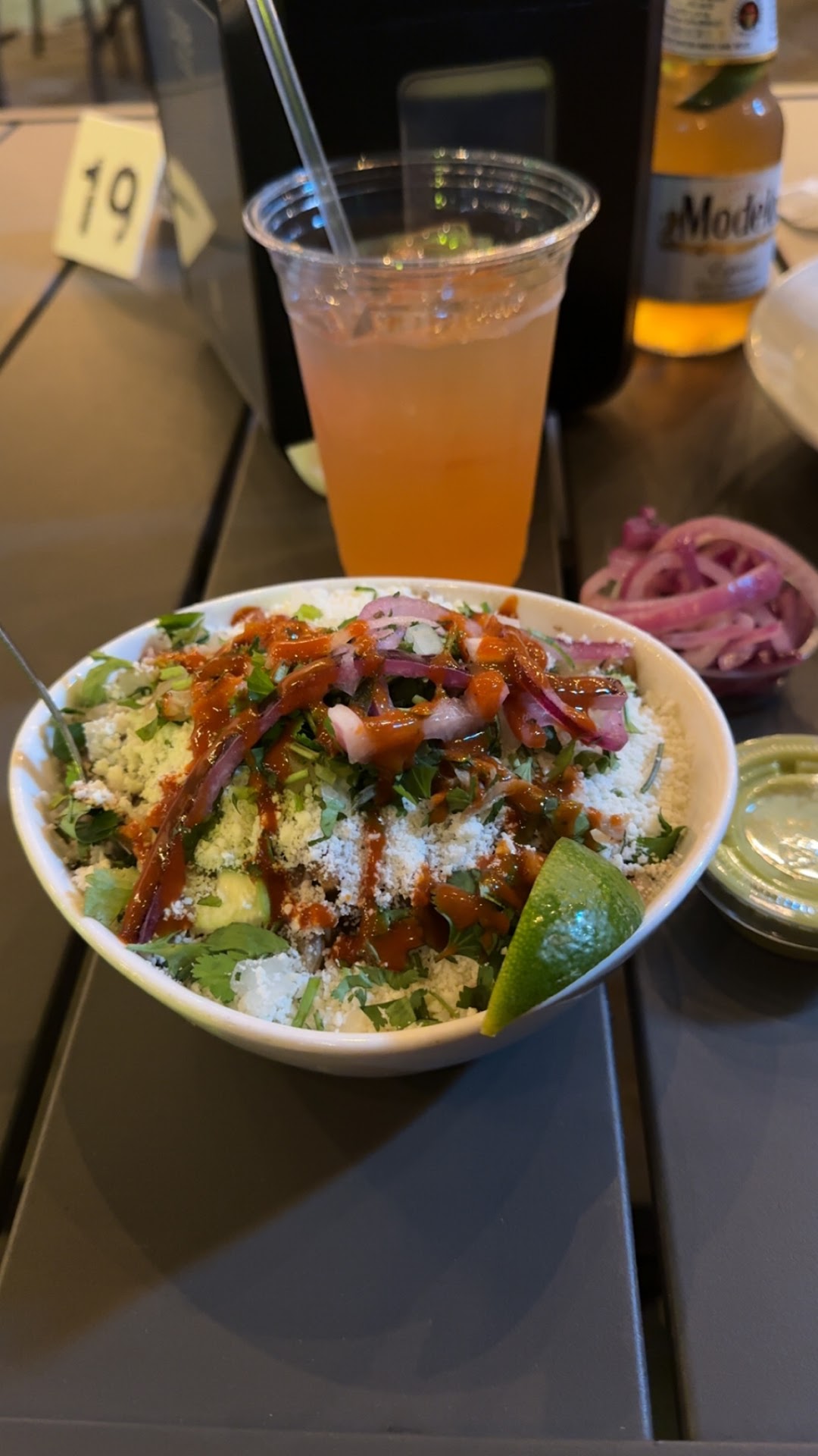 Read moreThis place was amazing! We went here on a whim after poorly planning our Valentines night. They’re new so they weren’t packed, but they should have been! I’ve eaten at a lot of really yummy taco places but this is now one of my favorites. The manager (or owner? He had owner vibes) was very kind and polite to us, the FOH staff was helpful in answering any of our questions, and the food was ON POINT. Hot, fresh, carefully put together, and delicious! I had elotes con carne but the carnitas tacos are the best, and I love that the plate comes with elote instead of just rice and beans. We sat on the back patio and the manager came and turned on the heaters for us even though we were the only ones out on the patio. The back patio is so peaceful and pretty, and would be even more perfect in the spring time. They have fans out there too, don’t worry! The only criticism I have is that the salsa and chips tastes a lot like jarred salsa from any grocery store. But the green sauce...