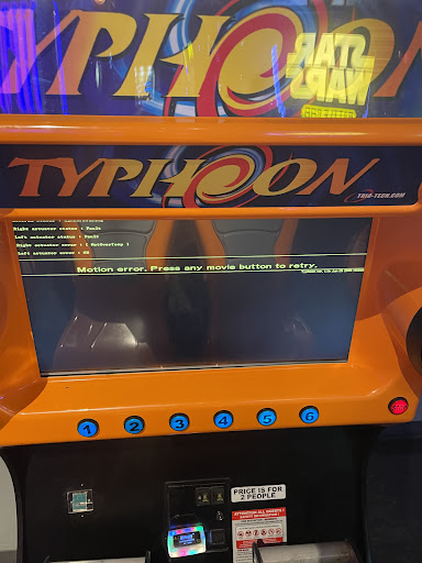 Tried to play the games: 4 kiosks to purchase new game cards and only one that was working, so we were all waiting for the one machine. Purchased a new game card, which has a one time $3 charge to activate. The machine gave me a used card, whose magnetic strip was severely scratched. It was so damaged that at each swipe, at each game, it continuously said “try again”.
