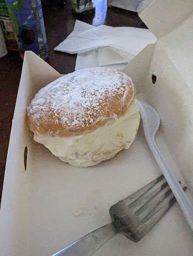 Everything looked delicious, and I ended up getting a sausage and cheese kolache, a small jalapeƱo kolache, a glazed donut, and an iced latte.