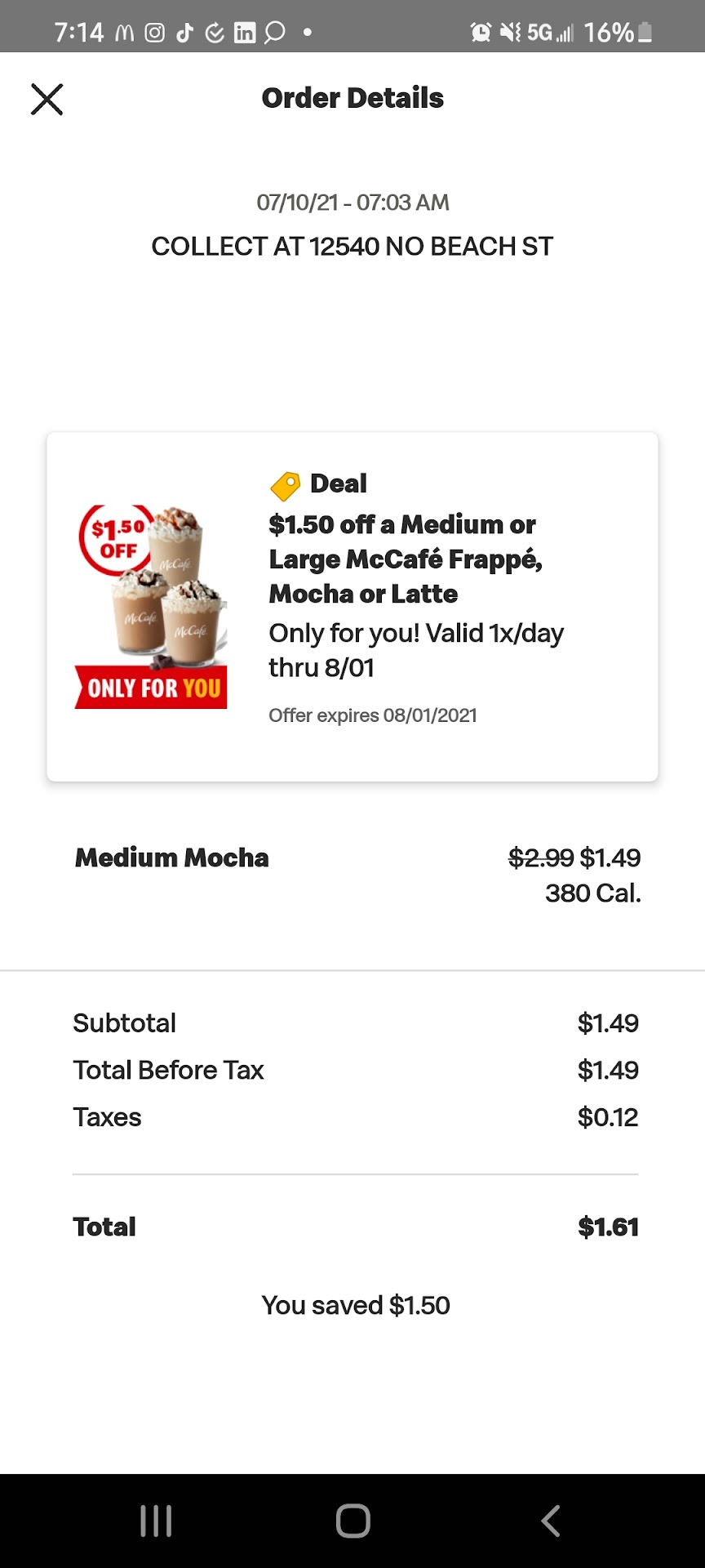Read moreIt took 10min to get a mocha through mobile order * what's fast about that *. There was no one in drive thru when I pulled up to #4. I waited, saw people come and go, made sure I put the right location, saved the # because the wifi messes up when I get close to McDonalds...then ,I pull thru drive. What pisses me off, I say I've been waiting for my med mocha, the lady in stripes says...what, I sent it out? Not to me...and Noone cleared the acct either because it literally tells me when u do. She ask me to scoot up, so she can handle the people behind me, as if I wasn't important and hadn't already been waiting.