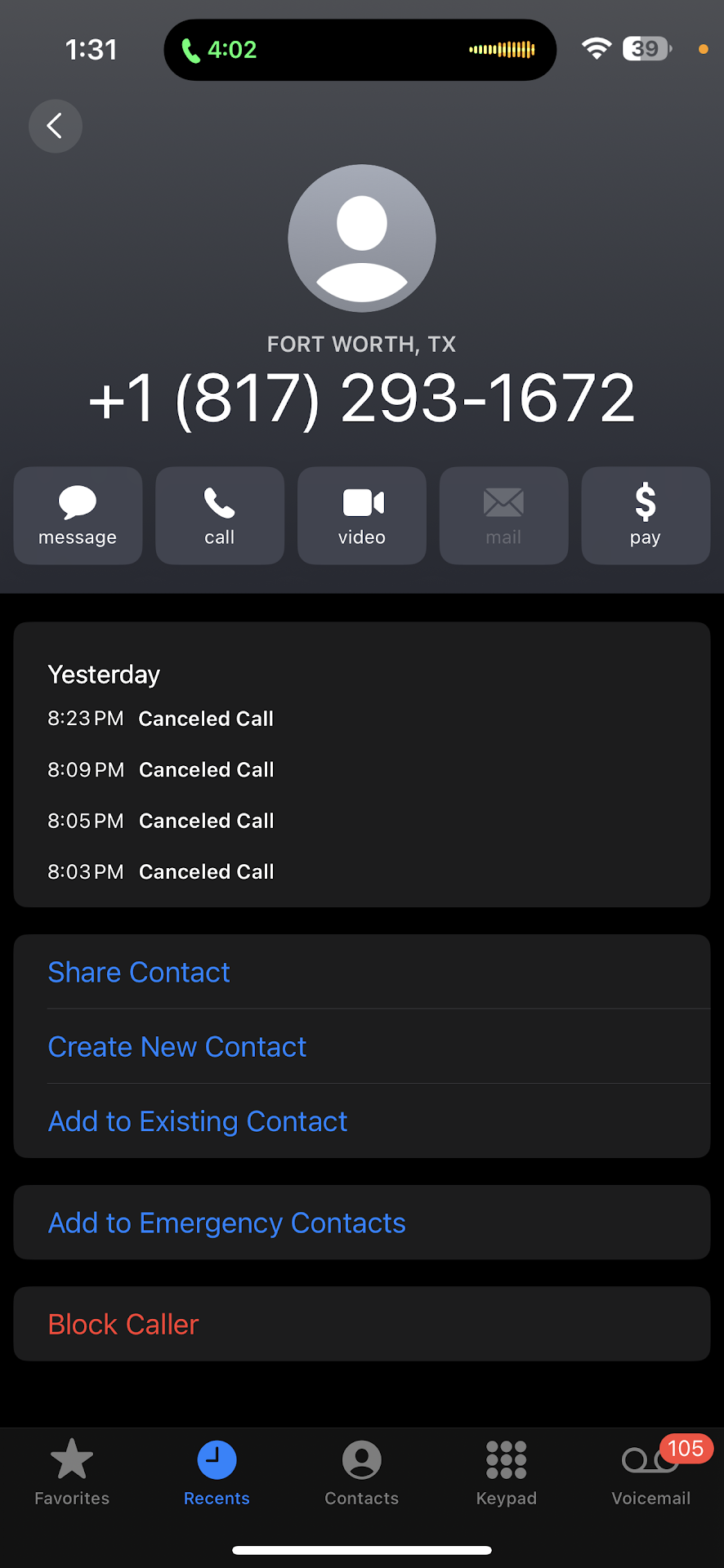 I get in my car and drive down the road and call back because i was now late to a meeting.