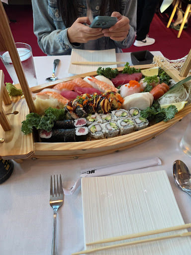 Here's where things go wrong: No one is here on a Thursday evening, and after visiting, I know why The atmosphere is super odd. Office supplies in the corner, there was a pocketknife casually sitting on the table next to us, the appearance that they are trying to be fancy but in a sketchy old bank building that needs a facelift. The saddest part is the food. I don't know what the across the board 5 star reviews are smoking, but I don't know if I can trust any of them. We ordered a sushi boat for two. It came with a variety of sashimi and sushi. The sashimi all tasted like it had just been thawed and did not taste fresh at all. The tuna and salmon were okay, palatable. The shrimp nigiri was decent. Every other piece of sashimi was pretty bad. The nigiri was slightly better but still did not meet any expectations for the price. There were three sushi rolls: a maki roll, an urumaki roll, and a "dragon roll". The maki was fine, nothing special, about what you could get at the most basic sushi restaurants. The urumaki was grocery store sushi level. The best food on the boat was sadly the overdressed and Americanized dragon roll. It at least tasted good since the sauces overwhelm any flavor of fish. I am confused by this place because it feels like they want to be upscale sushi with a focus on sashimi and nigiri, but they can't make either of those well. Instead they can make your run of the mill Americanized roll that you can get at any sushi restaurant for $15-20. Those are the sushi restaurants I try to avoid. At the end, we had a "New York" cheesecake. It was thin, had no crust on the bottom, was much less sweet and creamy than typical cheesecake. Finally, when it came time to pay, we were told we had to either pay with cash or write down our card info for them to process later since their POS system was down. Immediately afterwards we were told we had to pay in cash. We don't carry cash so they suggested we go to the ATM at the 7-11 next door. They gave us the cheesecake for free as compensation, which was good since the cheesecake wasn't very good.