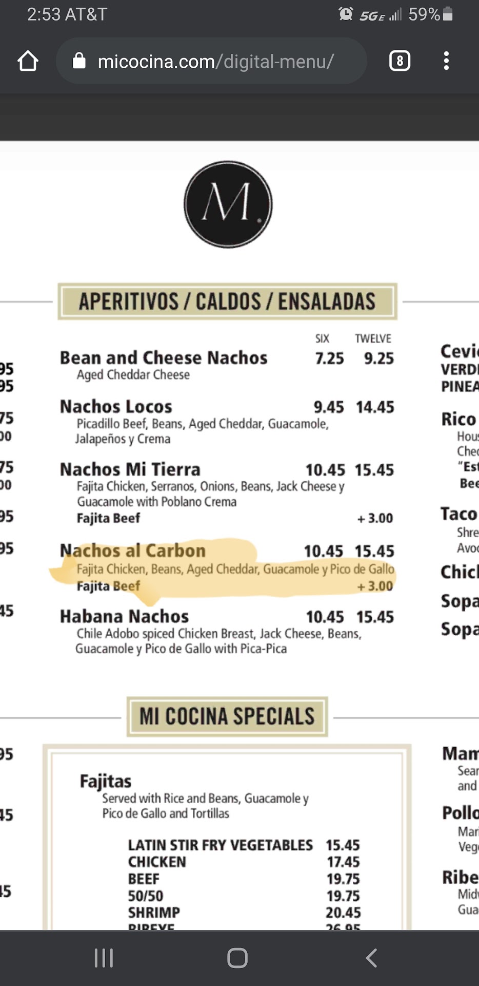 Read moreMy family and I have come to this location for closer to fifteen-twenty years, and the food quality, service quality, and overall quality of Mi Cocina has always been top-notch. Recently, we've become regulars there because of an amazing waiter named Gene. He feels like family- always greets us with warm smiles and makes sure everything is nothing less than spectacular. We've had so many different waiters throughout the years, but Gene has been the best by-far. Aside from amazing waiters, the food is amazing. Everything is fresh, filling, and as stated previously, spectacular! Personally, I always get fajitas (chicken, beef, combo beef&chicken) and they're my favorite fajitas from any Mexican food restaurant I've ever been to. They're amazingly seasoned and made, that I'm always tempted to ask for more to take home because they reheat very well. I've also tried their quesadillas and tortilla soup, and both are very delicious, filling food options that are also very good for reheating if needbe. Mi Cocina also has an unforgettable queso (my family and I get yellow queso with ground beef) and there's a perfect ratio of queso to meat to seasoning that makes it spectacularly wonderful. Back to Gene (the amazing waiter). He has never messed up an order, always brings good conversation, and whenever he waits on me and my family, it feels like we're talking to a family member. Gene always makes sure to double-check everyone's orders, and remembers everything you tell him so he can talk about it next time you come in. As previously stated, even though I've seen countless waiters (in general, not just Mi Cocina), Gene has been my favorite and my family's favorite by-far. Gene makes everyone feel welcome and taken care of, and greets everyone with smiles and warmth. Gene works both the downstairs seating area and the bar, and if you ask hm, he'll tell you when he works which section so you can come visit again, which is most likely because Gene is probably the best waiter they've got. Mi Cocina also has a lunch menu (weekdays from opening 'til 4 PM), and a dinner menu. I've ordered from both, and I would recommend to anyone reading this to order whatever you feel sounds good, because everything is...