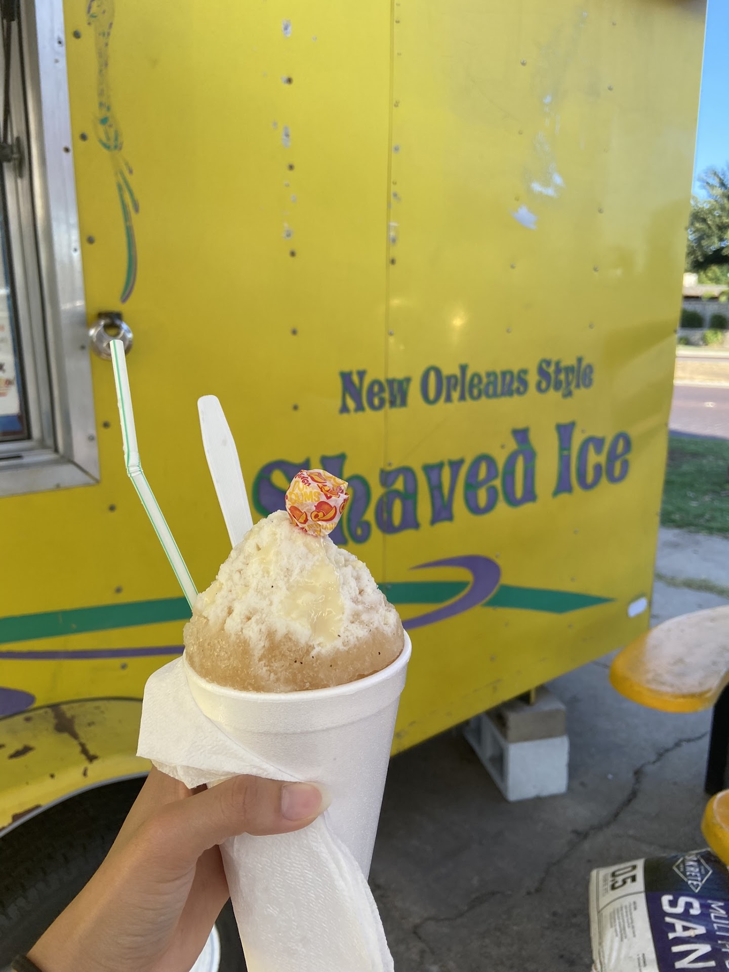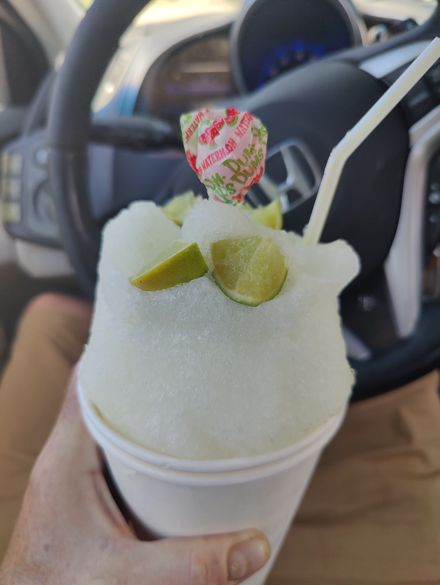 I was actually headed to grab a coffee down the street while my friend stopped at this shaved ice trailer for a snow cone--but I'm so glad I tagged along! The owner, Jon was incredibly kind and welcoming, not just to us but to everyone in line ahead of us. Jon was warm, personable, and attentive. I give a hard-working owner like this 100 stars, not just five. Even though I wasn't planning on getting anything, he opened up his little window and handed me a snow cone for free, completely unprompted. Such a thoughtful, unexpected gesture! And to top it off, the snow cone was absolutely delicious. This little trailer is so much more than just a stop for a treat-it's an experience full of kindness, community, and great flavor. I'll definitely be back (this time with snow cones as the...