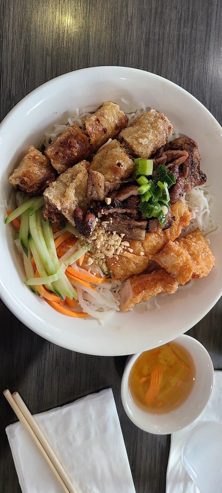 Here's what happened during our visit: Both my husband and I ordered the Bun Bo Hue. My husband decided to get pho noodles instead of the usual Bun Bo Hue noodles as always, but he didn't like it after just one bite and wanted to switch to pho. I also found the Bun Bo Hue too lemongrass-flavored and spicy, lacking depth, (it was so bland) so I had to add fish sauce to enhance the taste. A lot of it! About ⅛ of a cup! Despite returning a full bowl of Bun Bo Hue, we were still charged for it. I’m glad I didn’t switch out my Bun Bo hue.