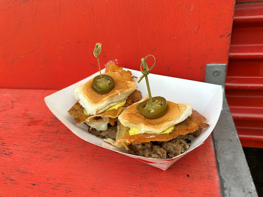 Oh Balls! is an absolutely amazing food truck that I recently had the pleasure of visiting. I ordered the "Smashed Ballger," and it was a dish that completely blew me away. This dish is made with a smashed meatball, spicy garlic aioli, Jack cheese crisp, bacon/onion jam, dill pickles, and served on a King's Hawaiian roll.