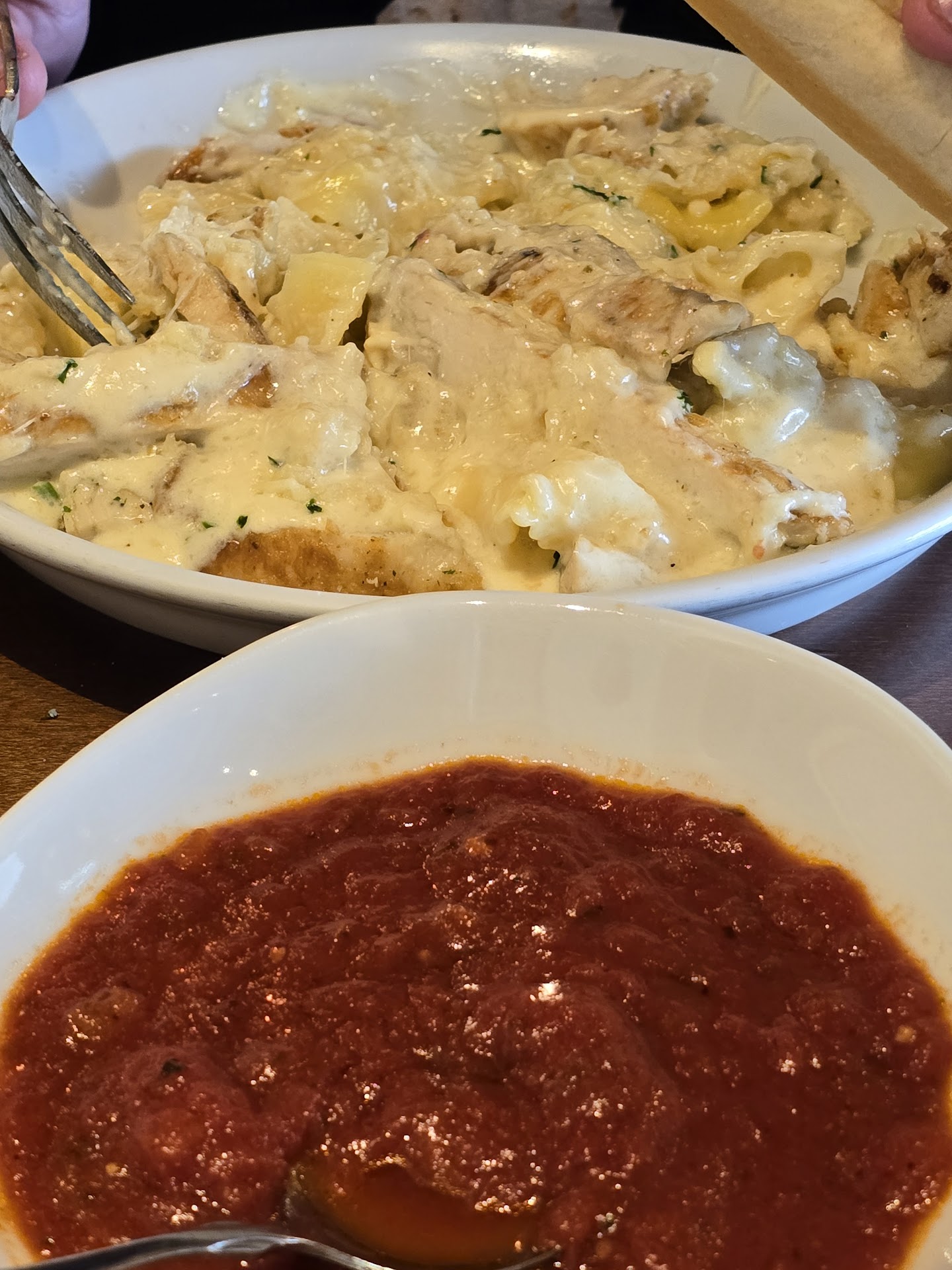 Good food service very slow for a week day and only about 10 customers in there the Host had to page our server 4 times now she look to be the only one working there was 6 or7 other servers in there but i guess she was up next . anyway i wouldnt say anything and she ended up being. A very good server but you are only as good as your as the people working for you if it was 10 to 40 mins it would have been fine but it was. 5:30 5:45 there was maybe 5-6 tables matbe 10-12 people in there and alot of servers standing. Around my friend and i stood there 71 mins other people were coming in for dinner. My friend cant stand long after about 50 mins my friend ask to sit down on one of the little sitting booths they have in the front i said two times can we just sit in the bar she said. Your server is coming right now and they are full and there was maybe 8-9 people in the bar youbg people after work but not full when the server got out there she told the host away from the customer's why did i come up i am on prep work and making tea getting wine on ice. The host said IDK i just pull up what it tells me and you should have replyed faster the server said come with me ladies and told host she would be back the host i think dropped the ball on this but i cant say that she did everything to get a server to seat us but when the server didnt reply the host should have called someone else but i think when the server didnt reply the host was going to make her pay cuz it had went past the proper waiting time even though the server had put on there prep work she was not available and the hostess should have let her finish her cuz I think they text back and forth on those little pagers she just wasn't having it but I have ate there probably I don't know 30 40 times in the last 25 years and they were always good. But not that day.I'm not complaining I just want some feedback I don't think that the server was at fault i think it was the host. Ok if that happens again the host needs to offer seat and a drink. That is to long to stand. Everytime we would start to walk to the bar or a seat the host would say she is coming right here....