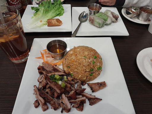 I'm not sure if they cut the springs rolls normally but we had ordered them for our 2 and 4 years old.. I am pretty sure they cut them knowing this and it was a really sweet gesture. Making it easier for the little ones to eat. (Big Cudos for that). I was impressed with the attention to detail in service and food preparation. The food came out in a flash and did not disappoint. Rice was cooked perfectly and was fresh. The pork was put on the side which is a big difference from the usual pho restaurants. I really enjoyed having it cut into small pieces and on the side. It allows you to control rice to pork proportions (which may just be my weirdness showing)