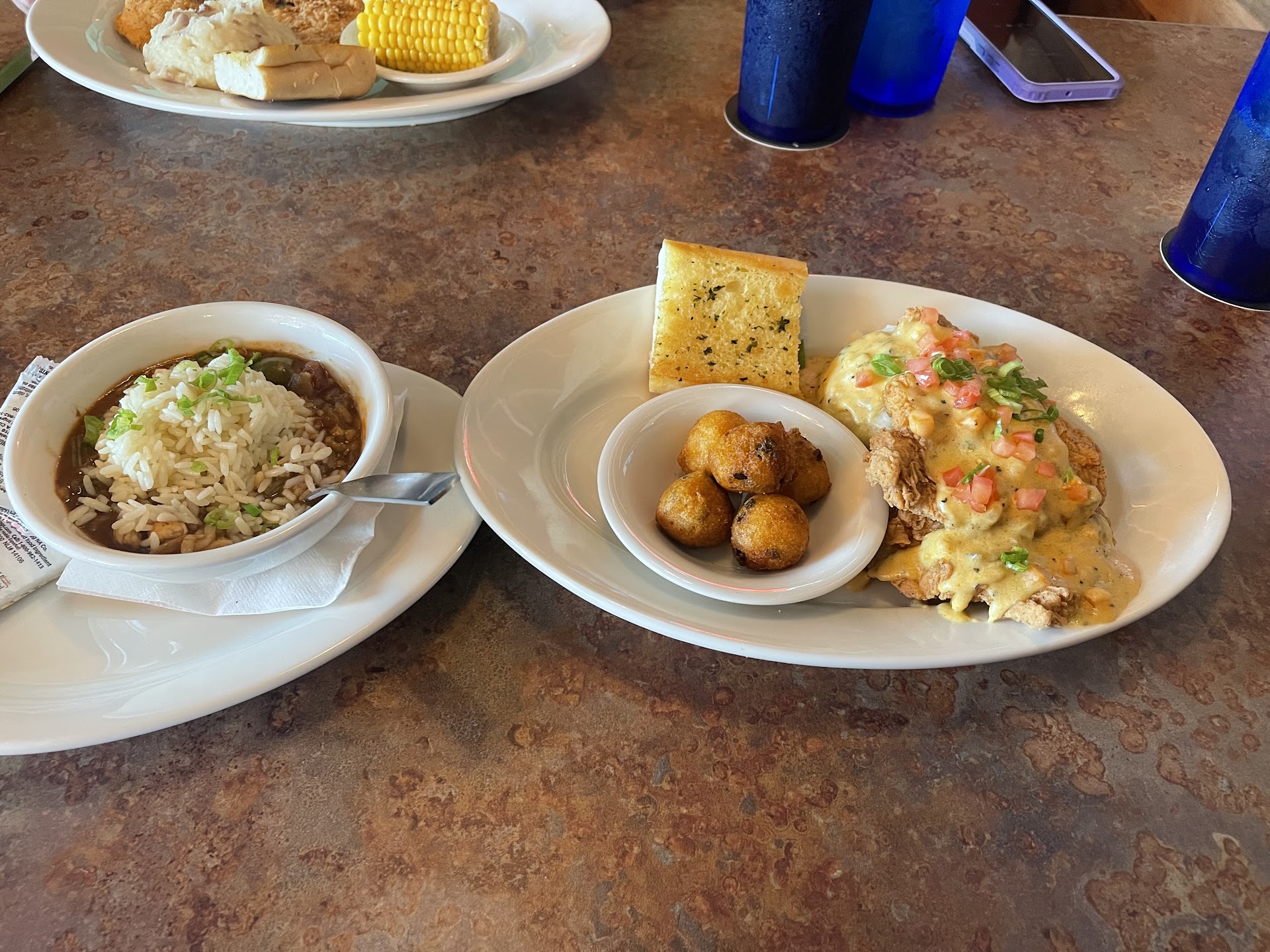 Read moreWhen I tell you I that I thoroughly enjoyed my visit here. I am not even kidding. My first experience here was great. The waiters open the door as you walk in. The jazz music sets the atmosphere for the theme of the restaurant. We came around 4 and they had some appetizers only for $5 like the popcorn shrimp for example. The middle aged waiter we had was okay. We just didn't like how he dropped down certain items but when he did pass us items, it was fine. The food is PHENOMENAL! The crab cakes was one of my favorites. It was an appetizer but I wish they had it as a meal. I got the grilled salmon potatoes, and string beans. My family all tried different meals so I was able to taste test a few meals they have. Everything was delicious that I tried. The catfish was another favorite of mine. I'm telling you just go. The reason why Im giving it 4 stars is because we went back a week later and had a older female waitress and she did something similar with the dropping of the straws and tossing down the utensils but when she handed us something it was fine, but there was a couple of times when she would bypass our extended hand and put it on the table instead, so I didn't like how it felt like it was racial thing, even though they both talked kindly, because I watched her and the waiter we had the last time do the same similar act to other brown/black and Hispanic ppl but I did not see them do this to white ppl. I doubt that they are the only 2 waiters there so this may not happen to everyone but next time we're just going...