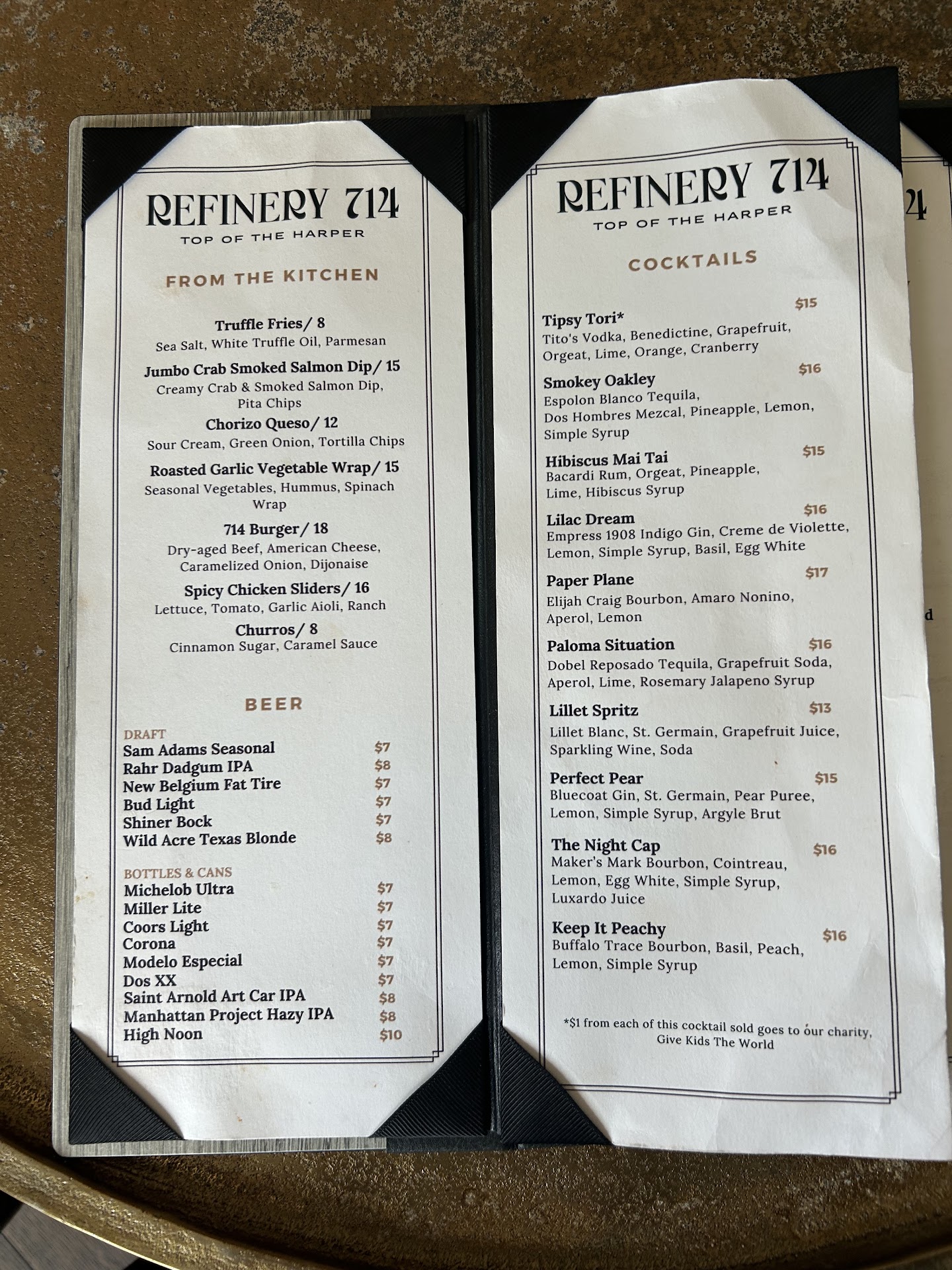 EXCELLENT COCKTAILS My wife and I dropped by for a drink before dinner. There were other people but it was not busy. So we got ourselves seated quickly. The decor is a bit cool - lacking a vibe of some kind. But it is clean and has great views. The bartenders are at the bar where you order - no service at the tables or seating arrangements. The cocktail menu offers some very nice and interesting selections. And the bartenders shake them up well and decorate them nicely. However. One bartender was more interested in chatting up some young women than paying attention to our cocktails. He made them well but when complete he just left our drinks at the bar without telling us they were done - not trying to get our attention to come pick them up. So not impressed. The other bartender was more engaged and professional. But. This is definitely a place to go...
