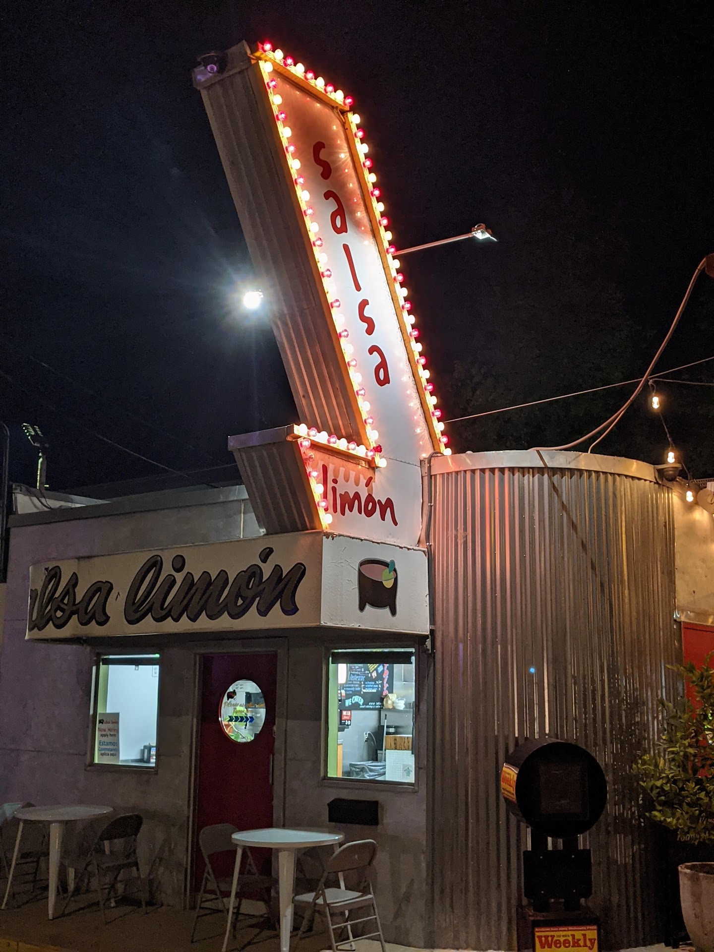 Read moreReally good! Seen them before but never stopped in but the hubby wanted tacos so I went to the Google. Salsa Limon was basically first that came up and we agreed. Got there before 1PM, big outside area for parking and maybe events? Nice outside seating area with tables and picnic benches. Looks like it is strung with lights and would be really nice at night! Walked in, small little place with a few bar-style seats and only a few little tables. Great music selection playing everything from Spanish favorites to maybe Top-40 kind of hits. Pretty basic offerings, tacos, burritos, quesadillas, tortas and breakfast tacos all day! The ladies were very nice, service was quick and the food was hot, fresh and really good! WARNING MY HUSBAND REQUESTED THAT I ADD the habanero salsa, is very hot! My husband has a very high heat tolerance but this one! He said this one had his taste buds boxing all the way down to his bellybutton (and truthfully on fire for about an hour lol). Check and Mate Salsa Limon, it...