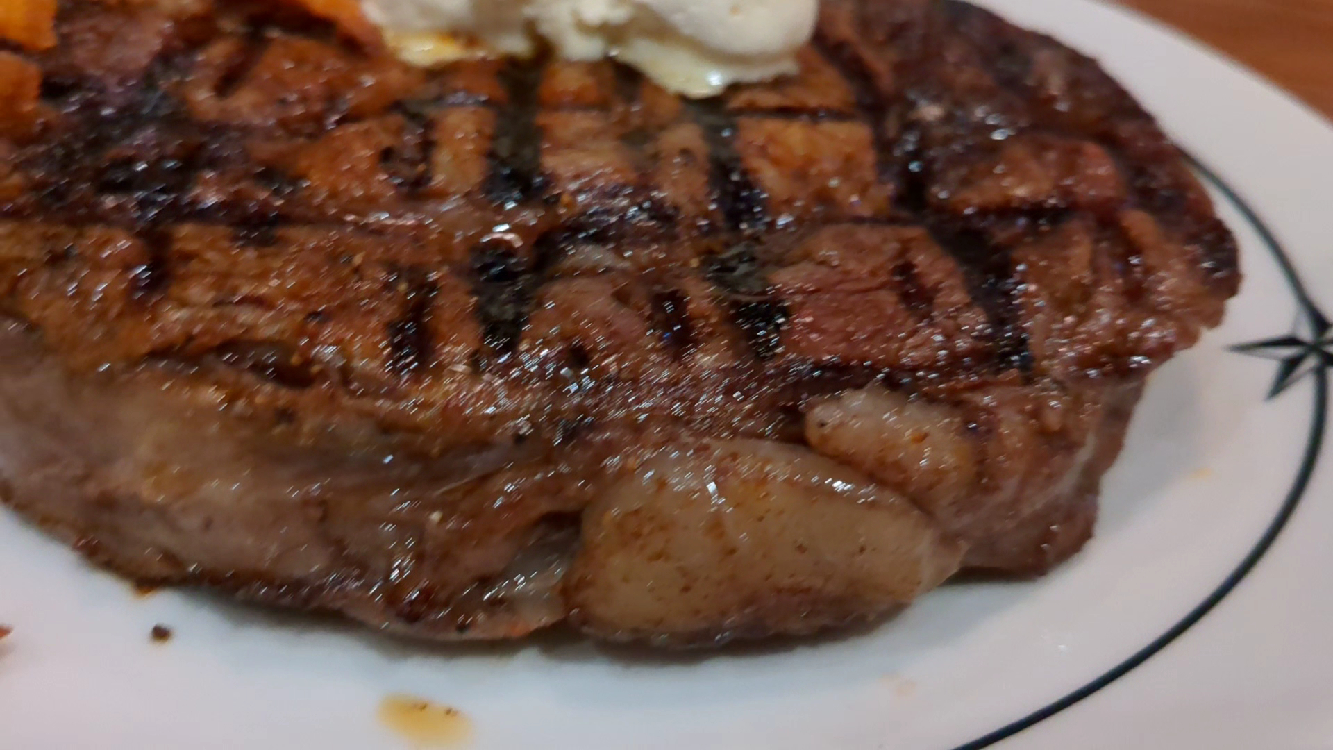 I kicked things off with a bone-in ribeye that could bring tears of joy to a vegetarian's eyes. Paired it up with a Caesar salad and a side of sweet potato fries, 'cause I like to balance out my food groups, you know? That ribeye, oh boy, it was a work of art. It was so tender, it practically whispered sweet nothings in my ear. And those sweet potato fries, crispy on the outside, soft on the insideâjust like my heart when I'm watching a dog adoption commercial. It was a match made in carnivorous heaven!