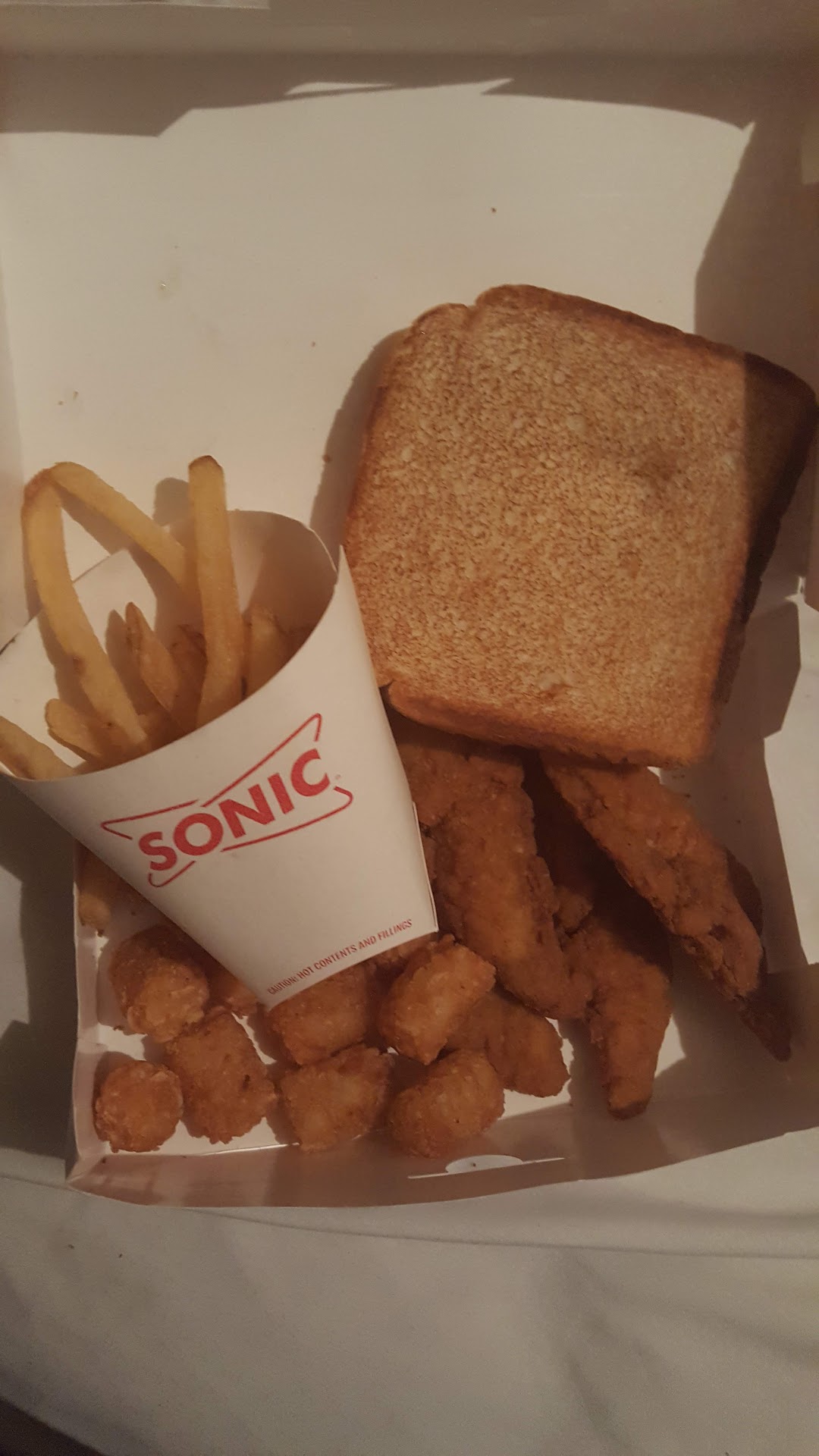 Read moreI love Sonic but this was my worst Sonic experience ever. When we walked into the dining room area of this particular Sonic there were some managers sitting at a table which is no big deal. but before we could even order there was some yelling and screaming coming from the gas station side of this facility. Apparently it was an upset worker yelling at other employees and the managers. Then we tried to order from the phones in the dining area but they would not work so we went to the drive-thru. I ordered a chicken strip basket with onion rings instead of tots or fries. when I went to pay for my food they asked me what I wanted for a dipping sauce and I said gravy, but was told that they do not carry gravy anymore. This was very disappointing but they said it was a corporate thing not a local thing so I just shrugged my shoulders asked for barbecue sauce and left. When I got home my chicken strips tasted like they had been cooked hours ago. They were very dry! And to top it off they did not give me onion rings, they gave me tater tots. Which I did not order and were not hot. I am hoping this was a one-time issue because of whatever that workers problem was that was yelling at everyone... Maybe it threw everyone off of their game. I will continue to visit Sonic but I do not plan to...