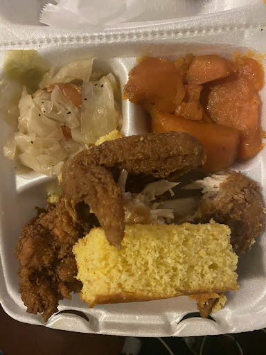 I ordered the 3 Chicken Wings .. yep I took a bite 🤷🏽♀️ with cabbage, sweet potatoes, and cornbread, and it was comfort food at its best. The wings were crispy and full of flavor, the cabbage was tender and well-seasoned, and the sweet potatoes had that perfect balance of sweetness and spice. The cornbread? Soft, warm, and just right.