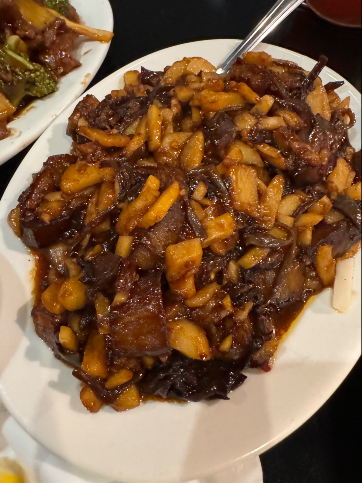 Eggplant with garlic sauce - Swamped with sauce that didn’t taste garlicky or spicy. Greasy and overloaded with water chestnuts.