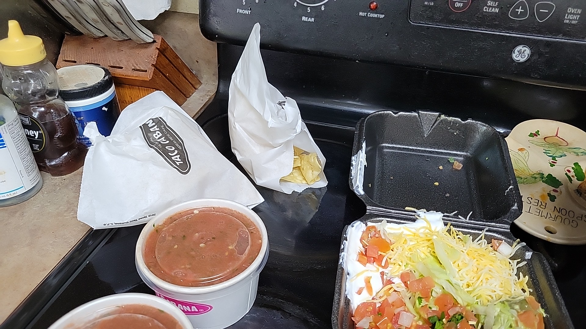 I was more than content to not leave a review tonight at all, let things sink in and readdress this the next day or perhaps on the next visit (if we ever go back). Except I went to open my sour cream, and there are traces of tomato and avocado. Guacamole. Onion city.