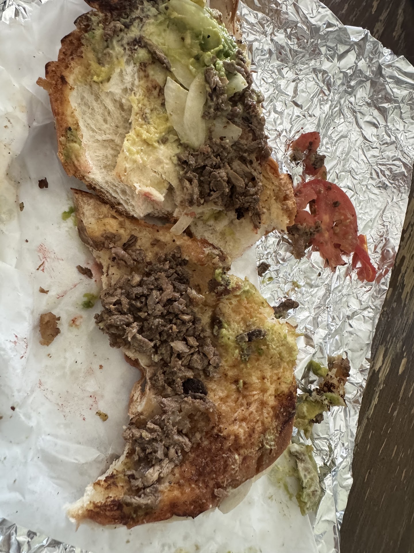 Ā Ā Ā Read moreI decided to stop by for a torta since it was on my way home. I ordered the asada torta but didnāt open it until I got home. Unfortunately, I was disappointed to find that the bread was dry and overdone. The meat was not a lot and was cut into very small pieces (see picture), resulting in a torta that felt and tasted like 95% bread and only 5% meat. The overall taste was mediocreāedible, but not enjoyable. Honestly, I would recommend Taco Bell over this experience.