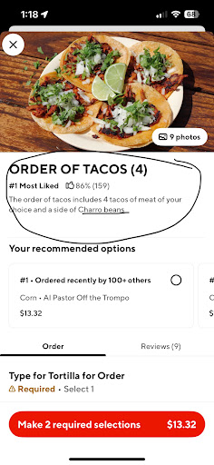 We placed an online doordash order for two taco plates, the description stated it was an order of four tacos and a side of charro beans. Once we received our order, we noticed the beans were missing so we decided to give the store a call to see if it was a mistake. After speaking to the first person the lady was super nice and was trying to resolve and figure out if it was a mistake or not. Suddenly another girl clearly grabs the phone and has an attitude and tells me that I messed up on my end and it’s not their problem. She stated that the Doordash display of the order of tacos does NOT come with beans, however after trying to calmly explain the situation to her she continued to cut me off and say it was my fault. I understand that there could have been an issue with what Doordash displays and I have no issue with that. However, I do not appreciate being spoken to as if I am dumb for asking a clarifying question in a calm manner, at no point was I being rude with them. The food itself was good, however I am not sure I will be visiting or attending this location because of how disrespectful the second girl was on the phone. As someone who works in customer service, there was absolutely no need to talk to anyone like that for asking a simple question. Below I have attached photos which clearly show that when ordering online it states beans come with the meal, and the only “add beans” option has a separate charge. To Temo’s: Please clarify this issue with DoorDash so that no one has to call the store and deal with a...