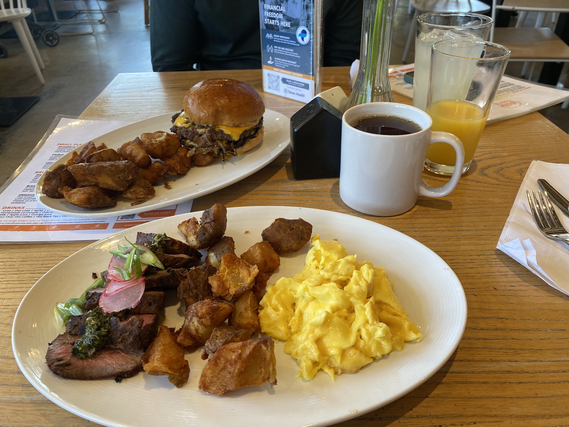As this was Easter brunch we chose the Chorizo Corn Cake with Over-easy Egg, the Eggs Benedict and the Pancakes...all were delicious, but the chorizo dish was AMAZING!