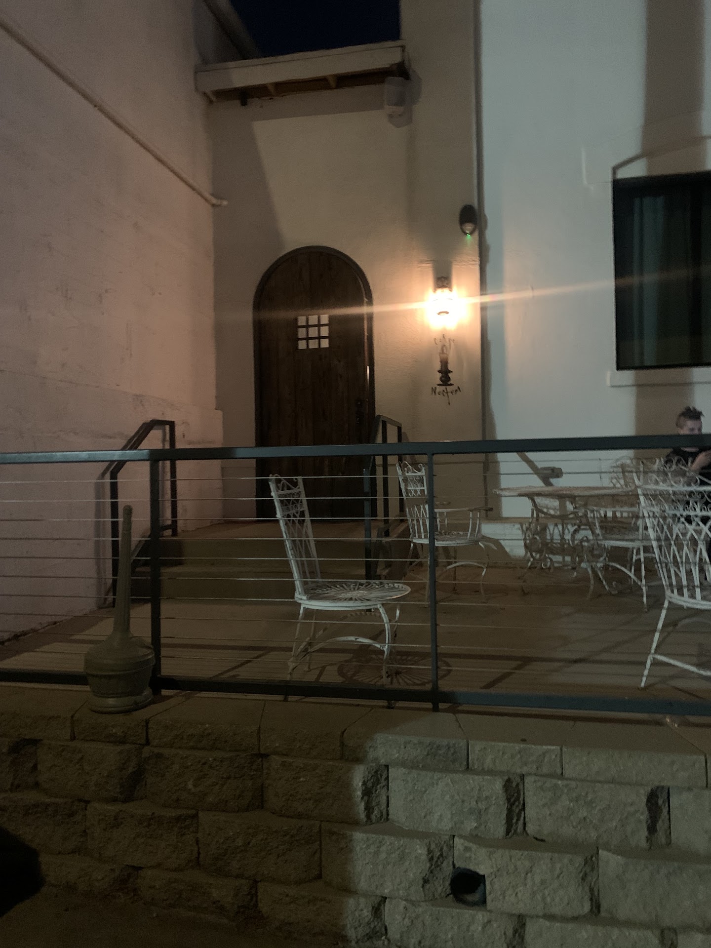 The ambiance is inviting and there is plenty of seating. There is seating outback as well for those wanting outdoor space. The decor is faux-Victorian/midcentury that feels otherwordly. No rock is left unturned as even the bathroom follows the general theme of gaslamp fantasy.