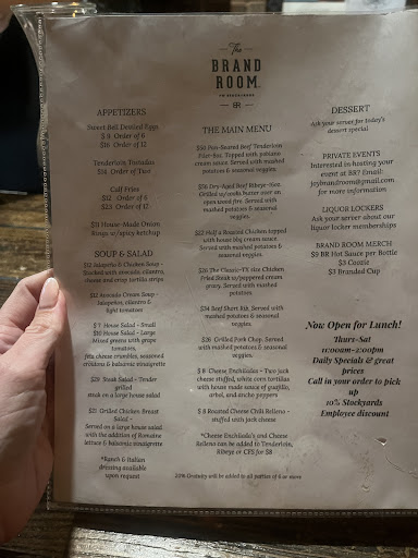 Read moreIf you haven't had dinner at the BRAND ROOM, you're missing out on the best of Fort Worth. It's a local spot, local people, local chef, local musicians, it's as Fort Worth as you get yall! The famous Stockyards chicken fried steak still lives, and good luck finishing it all! Don't get me started on the steak. Smoked and flame kissed on the back porch, served with one of a kind, homemade mashed potatoes! It's wine and beer only unless your lucky enough to have a highly desired private "liquor locker", perks to being local. Live music on the back porch with Steve Stewart and the band, make sure to put in your song request and tip the band! But it's the bartenders for me that make this place special, they're Texas friendly & ready to give you a great BRAND ROOM experience! So get your boots on, grab your friends, reserve your table cause it's time to hit Fort Worth! Plan on going dancing afterwards at Rodeo Exchange to top off the...